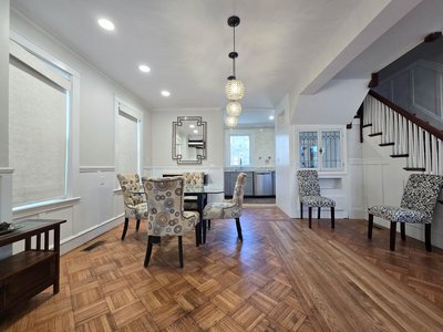 This beautifully renovated single family Colonial blends classic charm with modern updates. Original details like hardwood floors, moldings, fireplaces, and built-ins are complemented by updated kitchen and bathrooms. The spacious layout includes 5 bedrooms and 3.5 bathrooms, including a primary en-suite bathroom. Main living level features bright sun room, formal dining room, and giant living room. Other recent upgrades include new windows, insulation, gutters, and a new heat pump. Located steps from Jamaica Pond and the Emerald Necklace, with easy access to Boston’s top hospitals, universities, and parks. Garage and driveway parking included, making this rare offering as practical as it is impressive. **Option for tenant to use furniture shown in photos for lease term or can be removed if requested**