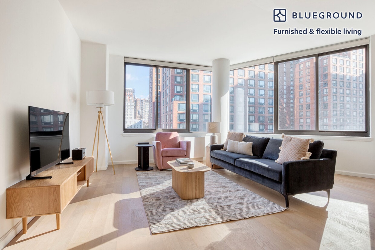 Show up and start living from day one in New York with this pretty two bedroom Blueground apartment. You’ll love coming home to this thoughtfully furnished, beautifully designed, and fully equipped Union Square home with stunning views over the city. (ID #NYC1302) The advertised rate of $11,810/month is the lowest available price, based on a 12 month(s) stay with a move-in date of May 3, 2026. Rates vary depending on the duration of stay, season, and other parameters. For exact pricing and additional pricing components, please visit our website and enter your desired move-in and move-out dates. The rate is applicable when billed upfront; it can be higher if billed in multiple payments. Brokers are welcome to reach out. Were you looking for an unfurnished lease? Try Blueground instead and upgrade from unfurnished to furnished living: - Furnished at rates comparable to unfurnished - No setup or furniture costs - save thousands - Move-in ready - save time, just bring your suitcase Designed with you in mind Thoughtfully designed with bespoke finishes, modern furnishings, and a fully equipped kitchen, you’ll enjoy that “I’m home” feeling with this Blueground apartment. Whether you’re lounging in your cozy living room streaming the latest and greatest entertainment on the smart TV or premium wireless speaker, or getting some well-earned rest on the superior quality mattress with fully stocked linens, you’ll fall in love with everything this Union Square apartment has to offer. This apartment also offers in-apartment laundry. Sleeping arrangements Queen Bed, 63in/160cm Queen Bed, 63in/160cm Amenities Building amenities unique to this two bedroom apartment include an on-site: - BBQ Area - Doorman - Dryer - Elevator - Washing machine - Pets allowed Arrival and ongoing support The entire apartment is yours to enjoy! Throughout your stay, you’ll have access to our Client Experience team through the Blueground App. You can schedule additional cleanings, submit maintenance requests, and view our neighborhood recommendations with just a few taps. We’ll share all details upon confirmation of your stay. Other things to note Building amenities may have an extra cost. This Blueground apartment has flexible lease options, allowing you to book it for one month, a year, or more. Pets are welcome, though weight limits and breed restrictions apply and may incur fees. Brokes CYOF. We take great pride in ensuring every photo displayed is shot in our own units with our actual furnishings. That said, we regularly refresh our decor and furniture arrangement, which may differ from what’s pictured. [SI]