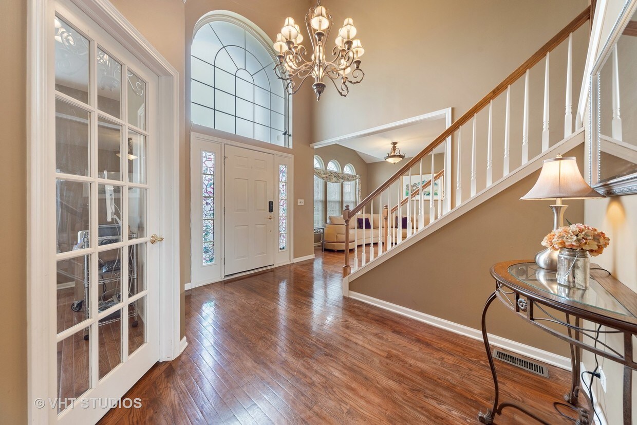 RELOCATING. Save the best for last! Gorgeous home overlooking the wooded conservation area! Gracious 2 story foyer greets you with gleaming hardwood floors (staircase and all second floor hardwood was installed within the last few years). Gourmet kitchen w/center island, 42" cabinets , 2 year old SS appliances, granite, new sink, new disposal, 1 and 1/2 year old high end washer and dryer and new garage door opener. Many rooms recently painted. sundrenched 2 story family room and fireplace, adjacent sun room with fireplace and lots of windows. Dual staircase, deluxe master suite with luxury bath, gorgeous finished walk-out basement with rec room, bonus/TV room, tons of storage, new sump pump and beautiful 2 tiered paver brick patio to entertain your family and friends with amazing views! Cul-de-sac location and near shopping and transportation. Great schools too!!!