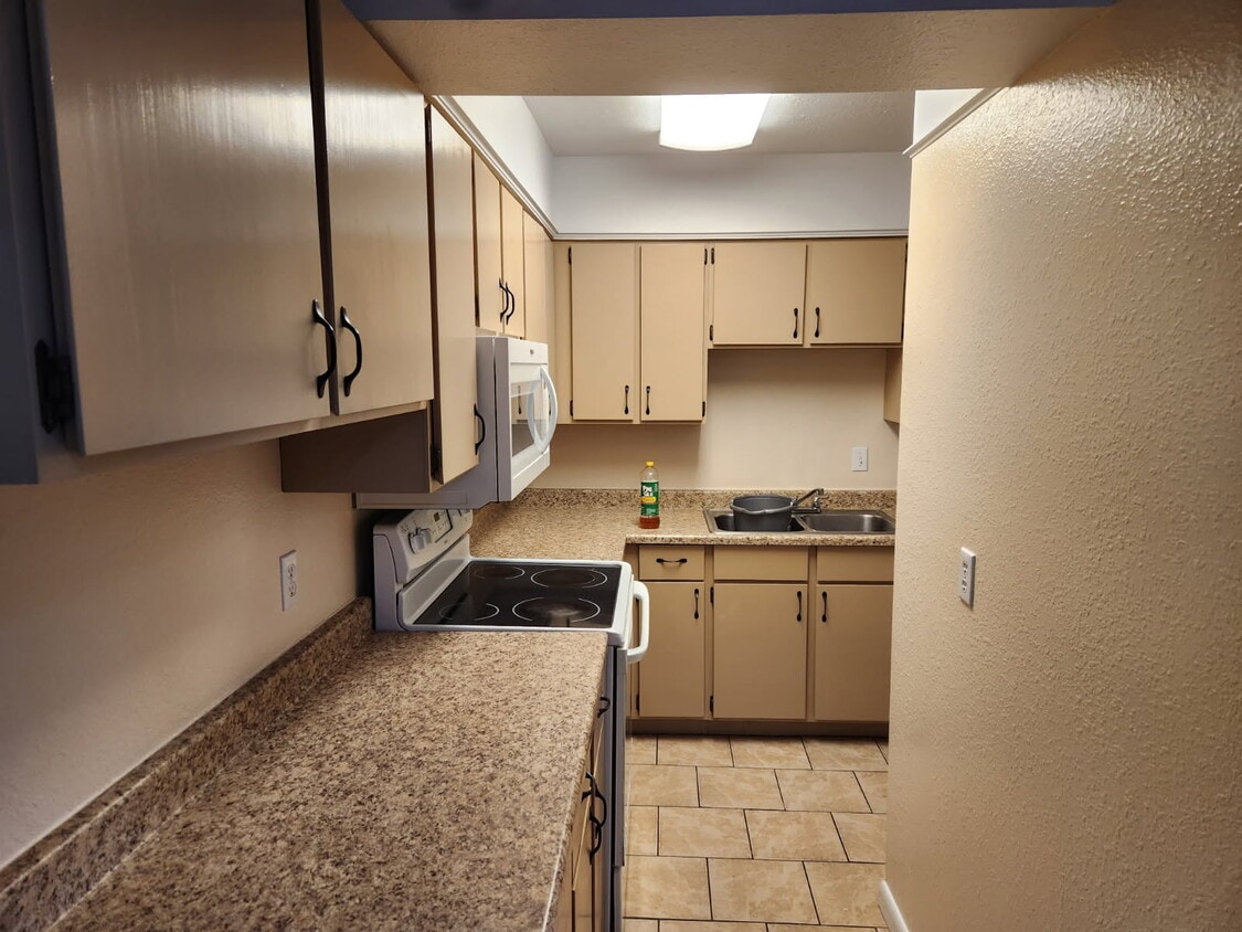 Top Floor! 2 Bedroom condo. New paint and carpet. Nice place to call home. There is a playground for children. This condo is unfurnished, and has a refrigerator and stove. Extra storage closet is just outside the front door. the location is close to gas stations, grocery and bus route. The best thing is its available right away. One covered parking spot available. Families only. No pets.