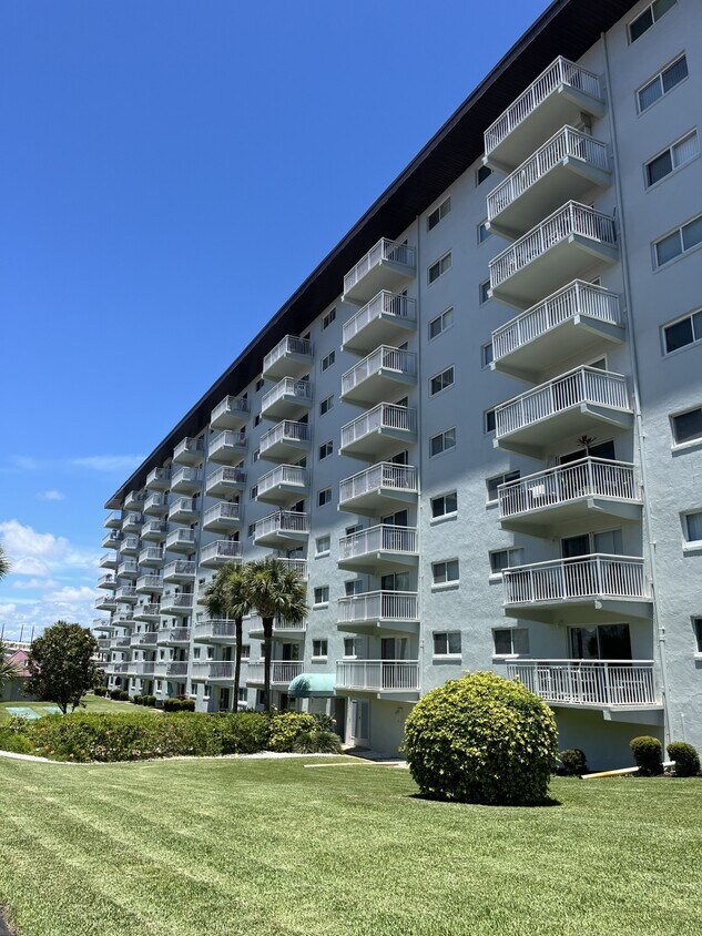 Riverplace One Hundred is an eight-story condominium building located in the vibrant Daytona Beach Shores neighborhood. Completed in 1973, this building houses 118 units and offers a straightforward, utilitarian design. Situated along the Halifax River, it provides residents with a serene waterfront living experience while being just a short walk from the bustling beach and downtown areas.