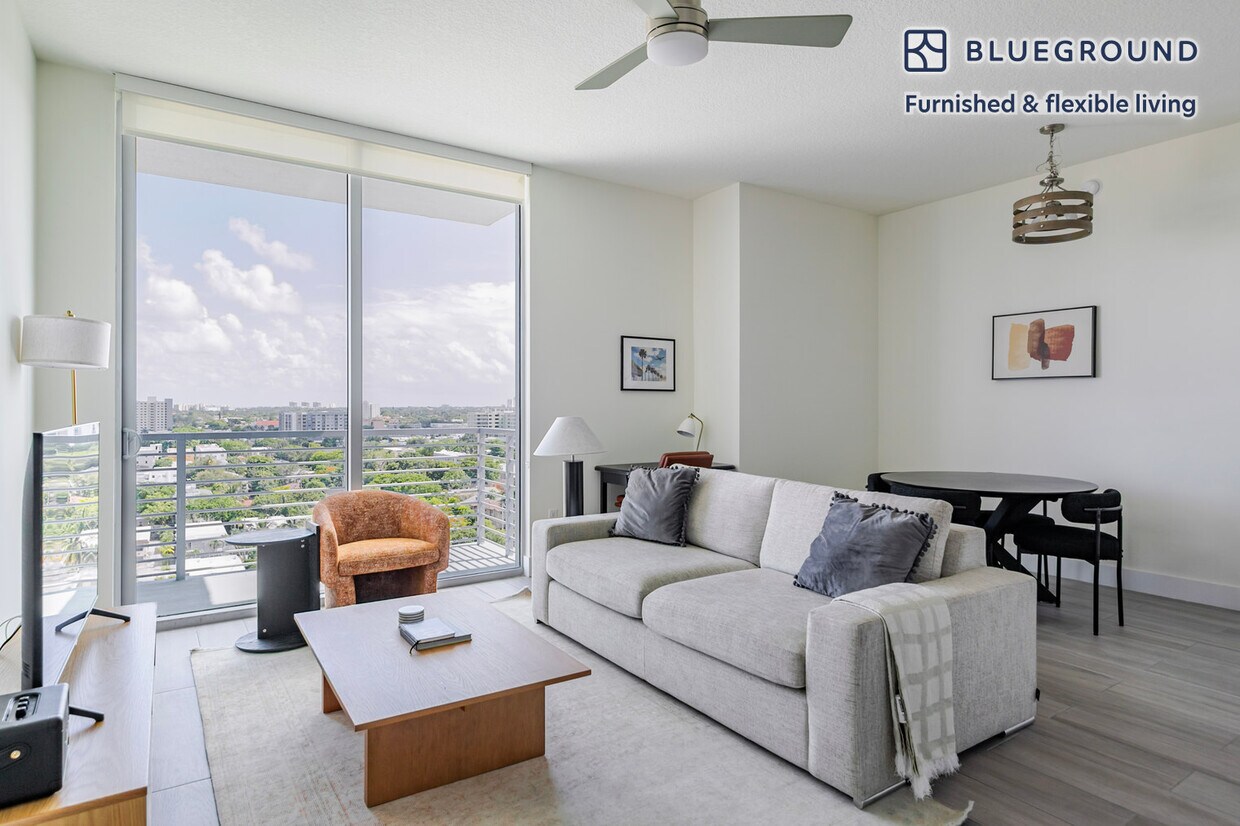 Feel at home wherever you choose to live with Blueground. You’ll love this stylish Riverside furnished two bedroom apartment with its modern decor, fully equipped kitchen, and charming living room. Ideally located, you’re close to all the best that Miami has to offer! (ID #MIA151) The advertised rate of $4,180/month is the lowest available price, based on a 1 month(s) and 29 day(s) stay with a move-in date of December 16, 2026. If you’re looking for a 1-year stay, the rate is $4,320/month. Rates vary depending on the duration of stay, season, and other parameters. For exact pricing and additional pricing components, please visit our website and enter your desired move-in and move-out dates. The rate is applicable when billed upfront; it can be higher if billed in multiple payments. Brokers are welcome to reach out. Were you looking for an unfurnished lease? Try Blueground instead and upgrade from unfurnished to furnished living: - Furnished at rates comparable to unfurnished - No setup or furniture costs - save thousands - Move-in ready - save time, just bring your suitcase Designed with you in mind Thoughtfully designed with bespoke finishes, modern furnishings, and a fully equipped kitchen, you’ll enjoy that “I’m home” feeling with this Blueground apartment. Whether you’re lounging in your charming living room streaming the latest and greatest entertainment on the smart TV or premium wireless speaker, or getting some well-earned rest on the superior quality mattress with fully stocked linens, you’ll fall in love with everything this Riverside apartment has to offer. This apartment also offers in-apartment laundry. Sleeping arrangements King Bed, 70.8in/180cm Queen Bed, 63in/160cm Amenities Building amenities unique to this two bedroom apartment include an on-site: - Doorman - Dryer - Elevator - Swimming pool - Washing machine - Parking - Pets allowed Arrival and ongoing support The entire apartment is yours to enjoy! Throughout your stay, you’ll have access to our Client Experience team through the Blueground App. You can schedule additional cleanings, submit maintenance requests, and view our neighborhood recommendations with just a few taps. We’ll share all details upon confirmation of your stay. Other things to note Building amenities may have an extra cost. This Blueground apartment has flexible lease options, allowing you to book it for one month, a year, or more. Pets are welcome, though weight limits and breed restrictions apply and may incur fees. Parking is offered based on availability and is subject to a fee. We take great pride in ensuring every photo displayed is shot in our own units with our actual furnishings. That said, we regularly refresh our decor and furniture arrangement, which may differ from what’s pictured. [SI]