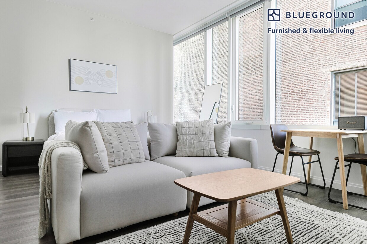Discover the best of Chicago, with this studio apartment in South Loop. It’ll be easy to simply show up and start living in this furnished apartment with its fully equipped kitchen, living room, and our dedicated, on-the-ground support. (ID #CHI1350) The advertised rate of $2,790/month is the lowest available price, based on a 11 month(s) and 29 day(s) stay with a move-in date of April 17, 2026. Rates vary depending on the duration of stay, season, and other parameters. For exact pricing and additional pricing components, please visit our website and enter your desired move-in and move-out dates. The rate is applicable when billed upfront; it can be higher if billed in multiple payments. Brokers are welcome to reach out. Were you looking for an unfurnished lease? Try Blueground instead and upgrade from unfurnished to furnished living: - Furnished at rates comparable to unfurnished - No setup or furniture costs - save thousands - Move-in ready - save time, just bring your suitcase Designed with you in mind As with any Blueground apartment, you’ll find a thoughtfully designed space complete with beautiful furniture and a fully equipped kitchen in this studio property. And, thanks to our superior quality mattresses, fully stocked linens, and towels, you can relax knowing you’ll always feel comfortably at home. When you’re ready for some fun, you can take in the Chicago vibes or bring the entertainment to you with the premium wireless speaker or smart TV. This apartment also offers in-apartment laundry. Sleeping arrangements Queen Bed, 63in/160cm Amenities Building amenities unique to this studio apartment include an on-site: - BBQ Area - Dryer - Elevator - Game room - Swimming pool - Washing machine - Lounge - Pets allowed - Playroom Arrival and ongoing support The entire apartment is yours to enjoy! Throughout your stay, you’ll have access to our Client Experience team through the Blueground App. You can schedule additional cleanings, submit maintenance requests, and view our neighborhood recommendations with just a few taps. We’ll share all details upon confirmation of your stay. Ideally Located This furnished apartment is located in South Loop. A dynamic neighborhood with a unique mix of attractions, shopping and history. Take a stroll along South Michigan Avenue and the nearby Prairie Avenue district to see "Millionaire's Row", an area lined with mansions belonging to Chicago's wealthiest elite. For shopping, visit the Roosevelt Collection, an open-air plaza, home to a cinema as well as premium local and national retailers. Along the southern edge, you will find Soldier Field, the Chicago Bears football stadium. Don’t miss the Shedd Aquarium, Field Museum and Grant Park, all adjacent to one another and huge attractions in South Loop. Other things to note Building amenities may have an extra cost. This Blueground apartment has flexible lease options, allowing you to book it for one month, a year, or more. Pets are welcome, though weight limits and breed restrictions apply and may incur fees. We take great pride in ensuring every photo displayed is shot in our own units with our actual furnishings. That said, we regularly refresh our decor and furniture arrangement, which may differ from what’s pictured. [SI]