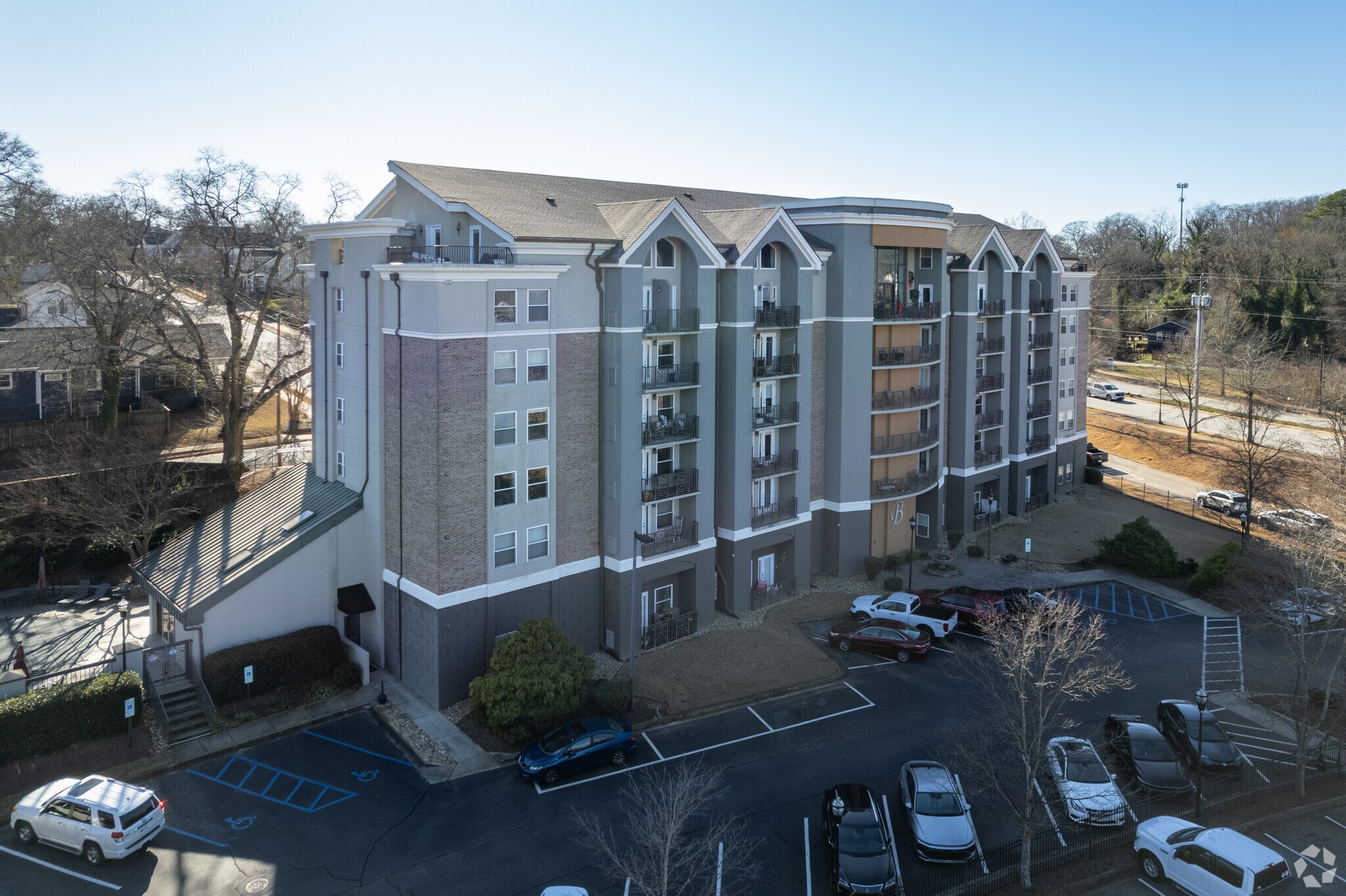 The Brio, a six-story condominium building completed in 1972, is situated in the heart of Downtown Greenville. With 50 units, this building offers a blend of modern amenities and a prime location. The Brio's architecture, featuring Italian influences, stands out in the vibrant Haynie-Sirrine neighborhood, known for its rich history and ongoing modernization.