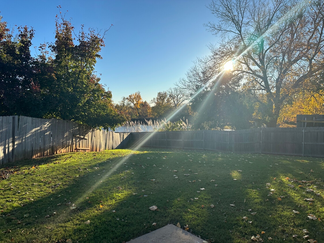 Three-bedroom, two-bath home with million-dollar backyard views of pond. A charming, cozy place to make your home! Great location on Sooner to get you easily to OU- campus, Tinker Air Force Base, and I-35. Enjoy your morning coffee and those golden hour evenings in this gorgeous backyard overlooking trees, all kinds of water foul and even an occasional beaver. Large trees keep it cool in the evenings all summer long, making for incredible grilling, family playing outside, relaxing in a hammock or any kind of outdoor living. Kitchen has been recently updated and has peninsula seating, new quartz countertops and backsplash and stainless steel appliances. Larger dining room/breakfast nook attached makes a perfect spot for game nights and family meals. Living room features wood burning fireplace and glass patio door for those water views of the backyard. Large front windows bring in natural light. Both secondary bedrooms feature their own pond views as well as their own closets. Secondary bathroom has large vanity and a deep linen/storage closet. Master suite has a walk-in closet with a reinforced door, thick walls, and interior locks. Makes a great place to go during a storm or any scary situation. On-suite bathroom. Utility area has washer and dryer hookups plus extra room for storage. Two car garage and attic. Large shed outside for all your tools and storage. Available sooner than May 1. Lease through May 31, 2027. Absolutely no smoking or vaping. Prefer no pets. Utilities not included, tenant must maintain lawn regularly, and change HVAC filter quarterly.