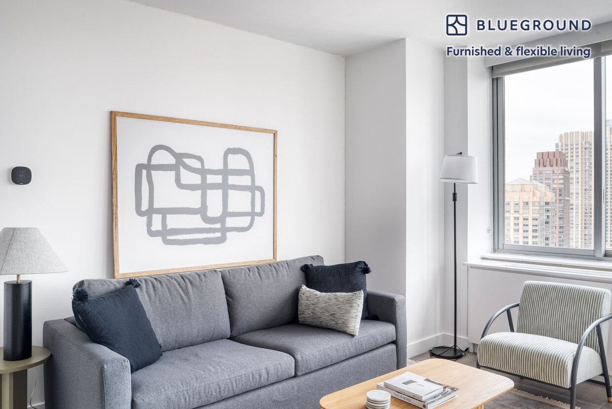 Discover the best of New York, with this two bedroom apartment in Lincoln Square with balcony views over the river. It’ll be easy to simply show up and start living in this furnished apartment with its fully equipped kitchen, living room, and our dedicated, on-the-ground support. (ID #NYC1069) The advertised rate of $11,780/month is the lowest available price, based on a 12 month(s) stay with a move-in date of June 1, 2027. Rates vary depending on the duration of stay, season, and other parameters. For exact pricing and additional pricing components, please visit our website and enter your desired move-in and move-out dates. The rate is applicable when billed upfront; it can be higher if billed in multiple payments. Brokers are welcome to reach out. Were you looking for an unfurnished lease? Try Blueground instead and upgrade from unfurnished to furnished living: - Furnished at rates comparable to unfurnished - No setup or furniture costs - save thousands - Move-in ready - save time, just bring your suitcase Designed with you in mind As with any Blueground apartment, you’ll find a thoughtfully designed space complete with beautiful furniture and a fully equipped kitchen in this two bedroom property. And, thanks to our superior quality mattresses, fully stocked linens, and towels, you can relax knowing you’ll always feel comfortably at home. When you’re ready for some fun, you can take in the New York vibes or bring the entertainment to you with the premium wireless speaker or smart TV. This apartment also offers in-apartment laundry. Sleeping arrangements Queen Bed, 63in/160cm Queen Bed, 63in/160cm Amenities Building amenities unique to this two bedroom apartment include an on-site: - Doorman - Dryer - Elevator - Washing machine - Lounge - Pets allowed - Playground - Playroom Arrival and ongoing support The entire apartment is yours to enjoy! Throughout your stay, you’ll have access to our Client Experience team through the Blueground App. You can schedule additional cleanings, submit maintenance requests, and view our neighborhood recommendations with just a few taps. We’ll share all details upon confirmation of your stay. Other things to note Building amenities may have an extra cost. This Blueground apartment has flexible lease options, allowing you to book it for one month, a year, or more. Pets are welcome, though weight limits and breed restrictions apply and may incur fees. Brokes CYOF. We take great pride in ensuring every photo displayed is shot in our own units with our actual furnishings. That said, we regularly refresh our decor and furniture arrangement, which may differ from what’s pictured. [SI]