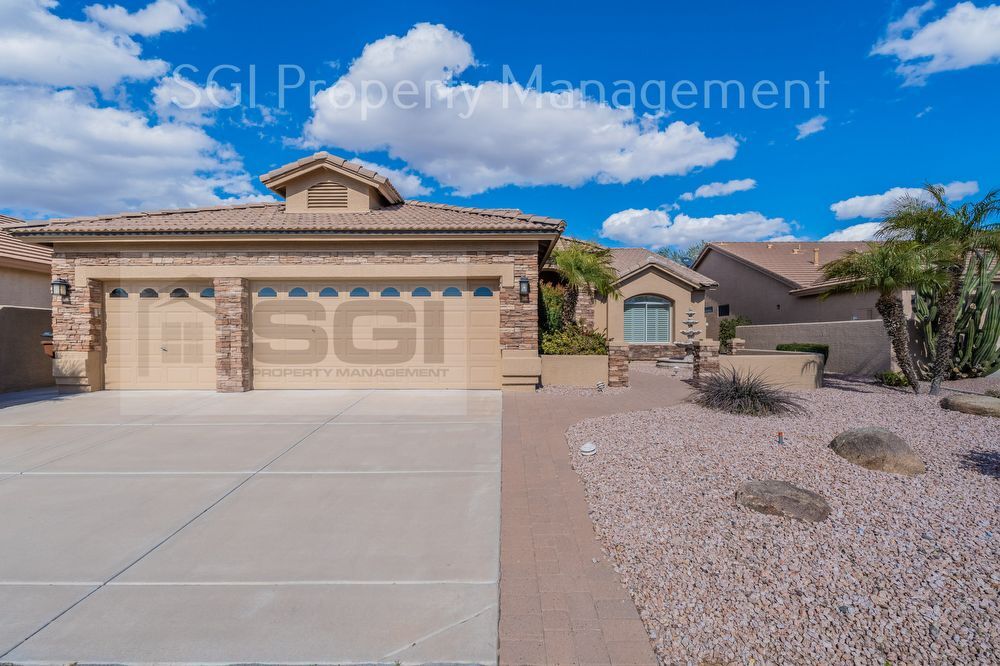 ---- SCHEDULE A SHOWING ONLINE AT: ---- 55+ Community!! Stunning 3/2 plus large office home with a fantastic view of the lake and #7 green on the golf course. The family room is open to the kitchen and has a wall of windows overlooking the amazing view. Open kitchen with cherry cabinets, granite countertops, stainless steel fridge, glass top stove, custom backsplash, built-in desk, and large breakfast island. A custom executive office with built-ins has double doors from the foyer and formal dining room.The upstairs offers 2 large bedrooms and a full bath. Huge downstairs master has a sliding door to the patio, custom walk-in shower, garden tub, inlaid floor medallion, and a large custom walk-in closet. 3-car garage and large laundry room with washer + dryer and a sink. All of this in the popular age-restricted (55+) guard gated Sun Lakes community featuring community pools/spa, tennis courts and more! Visit our website at: !** Lessee to verify all information Disposal Dryer