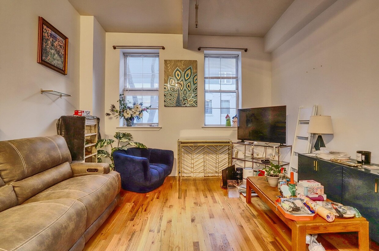 Stunning and expansive true loft home located in Hoboken's historic candy factory that boasts soaring 13-foot high ceilings. Deeded parking spot included in rent!!!! This open layout provides a sizable living room that will easily fit a sectional couch and dining table for maximum comfort. Bedroom extends space for a king-sized bed. Apartment also features hardwood floors, dishwasher and microwave/vent. Within close proximity to Trader Joe's and easy access to all that Hoboken has to offer. Transportation to NYC just blocks away. Building amenities include washer/dryer in the basement, an elevator and parking in the building. The building's great uptown location makes this the perfect home. Available for a 2/1-2/15 move in.