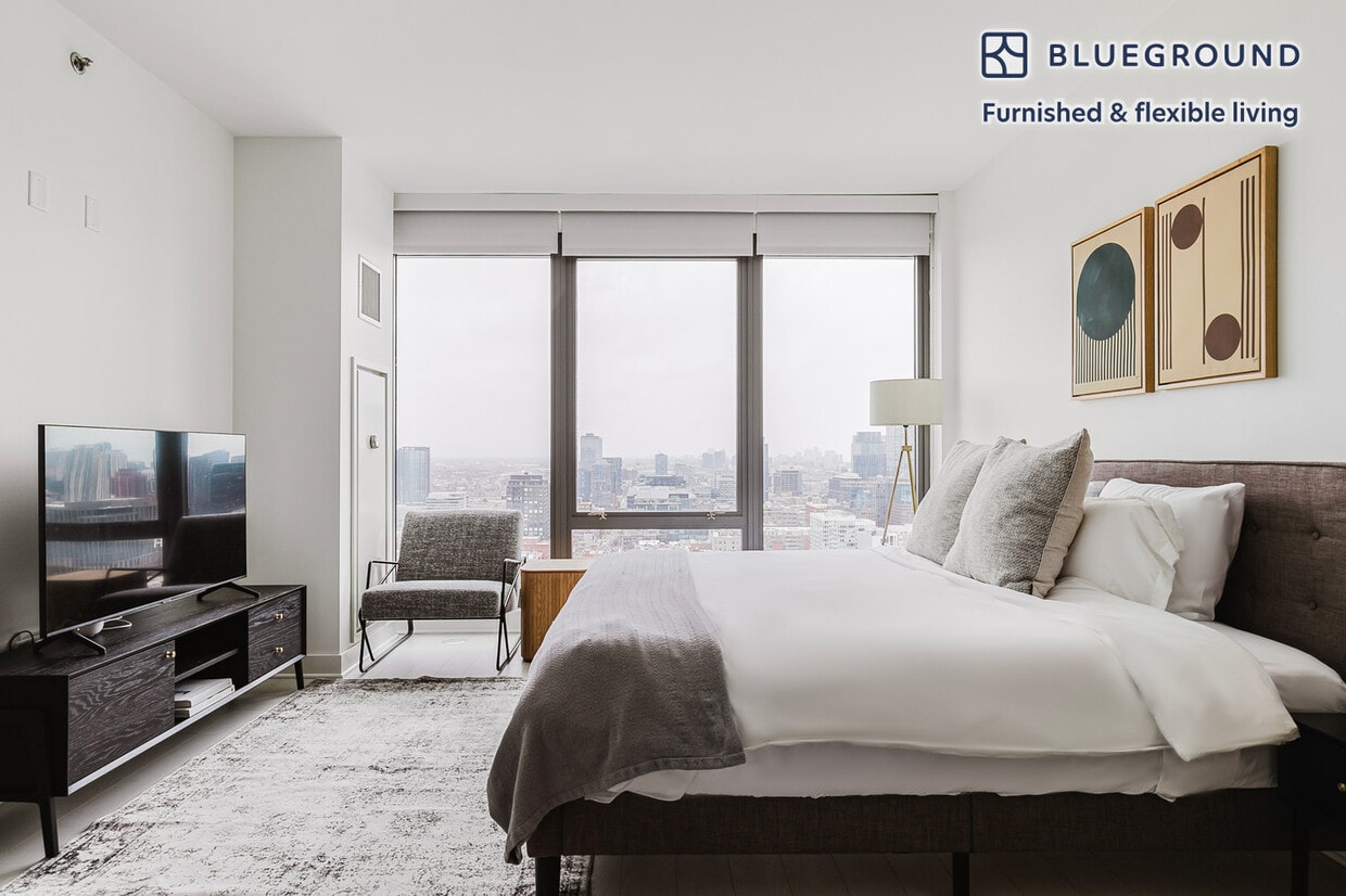Discover the best of Chicago, with this studio apartment in West Loop. It’ll be easy to simply show up and start living in this elegantly furnished apartment with its fully equipped kitchen, beautiful living room, and our dedicated, on-the-ground support. (ID #CHI1161) The advertised rate of $2,650/month is the lowest available price, based on a 1 month(s) and 20 day(s) stay with a move-in date of April 3, 2026. If you’re looking for a 1-year stay, the rate is $2,650/month. Rates vary depending on the duration of stay, season, and other parameters. For exact pricing and additional pricing components, please visit our website and enter your desired move-in and move-out dates. The rate is applicable when billed upfront; it can be higher if billed in multiple payments. Brokers are welcome to reach out. Were you looking for an unfurnished lease? Try Blueground instead and upgrade from unfurnished to furnished living: - Furnished at rates comparable to unfurnished - No setup or furniture costs - save thousands - Move-in ready - save time, just bring your suitcase Designed with you in mind Thoughtfully designed with bespoke finishes, modern furnishings, and a fully equipped kitchen, you’ll enjoy that “I’m home” feeling with this Blueground apartment. Whether you’re lounging in your roomy living room streaming the latest and greatest entertainment on the smart TV or premium wireless speaker, or getting some well-earned rest on the superior quality mattress with fully stocked linens, you’ll fall in love with everything this West Loop apartment has to offer. This apartment also offers in-apartment laundry. Sleeping arrangements King Bed, 70.8in/180cm Amenities Building amenities unique to this studio apartment include an on-site: - Doorman - Dryer - Elevator - Swimming pool - Washing machine - Lounge - Library - Pets allowed Arrival and ongoing support The entire apartment is yours to enjoy! Throughout your stay, you’ll have access to our Client Experience team through the Blueground App. You can schedule additional cleanings, submit maintenance requests, and view our neighborhood recommendations with just a few taps. We’ll share all details upon confirmation of your stay. Ideally Located Located in West Loop, this furnished rental invites you to explore the edges of downtown Chicago. From endless dining and bar options to art galleries and stylish shops, West Loop has emerged with so much to offer daily. During weekends, residents savor trips to the Chicago French Market and the vibrant strip of Randolph Street. The latter is known as “Restaurant Row” and is lined with some of the city’s best eateries. Fulton Market, one of the hippest and fastest-growing neighborhoods, is ideal for dinner and drinks. Union Station is only a 5 to 10 minute walk away. Other things to note Building amenities may have an extra cost. This Blueground apartment has flexible lease options, allowing you to book it for one month, a year, or more. Pets are welcome, though weight limits and breed restrictions apply and may incur fees. We take great pride in ensuring every photo displayed is shot in our own units with our actual furnishings. That said, we regularly refresh our decor and furniture arrangement, which may differ from what’s pictured. [GO]