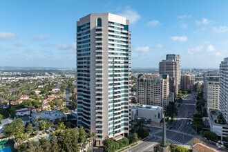 Rising 28 stories above the Wilshire Corridor, Blair House stands as a prominent fixture in the Westwood skyline. Completed in 1989, this luxury condominium offers 124 units of sophisticated urban living. The building's curved facade and continuous balconies create a distinctive silhouette against the Los Angeles backdrop. Blair House caters to those seeking an elevated lifestyle, combining spacious residences with resort-quality amenities in one of the city's most coveted neighborhoods.