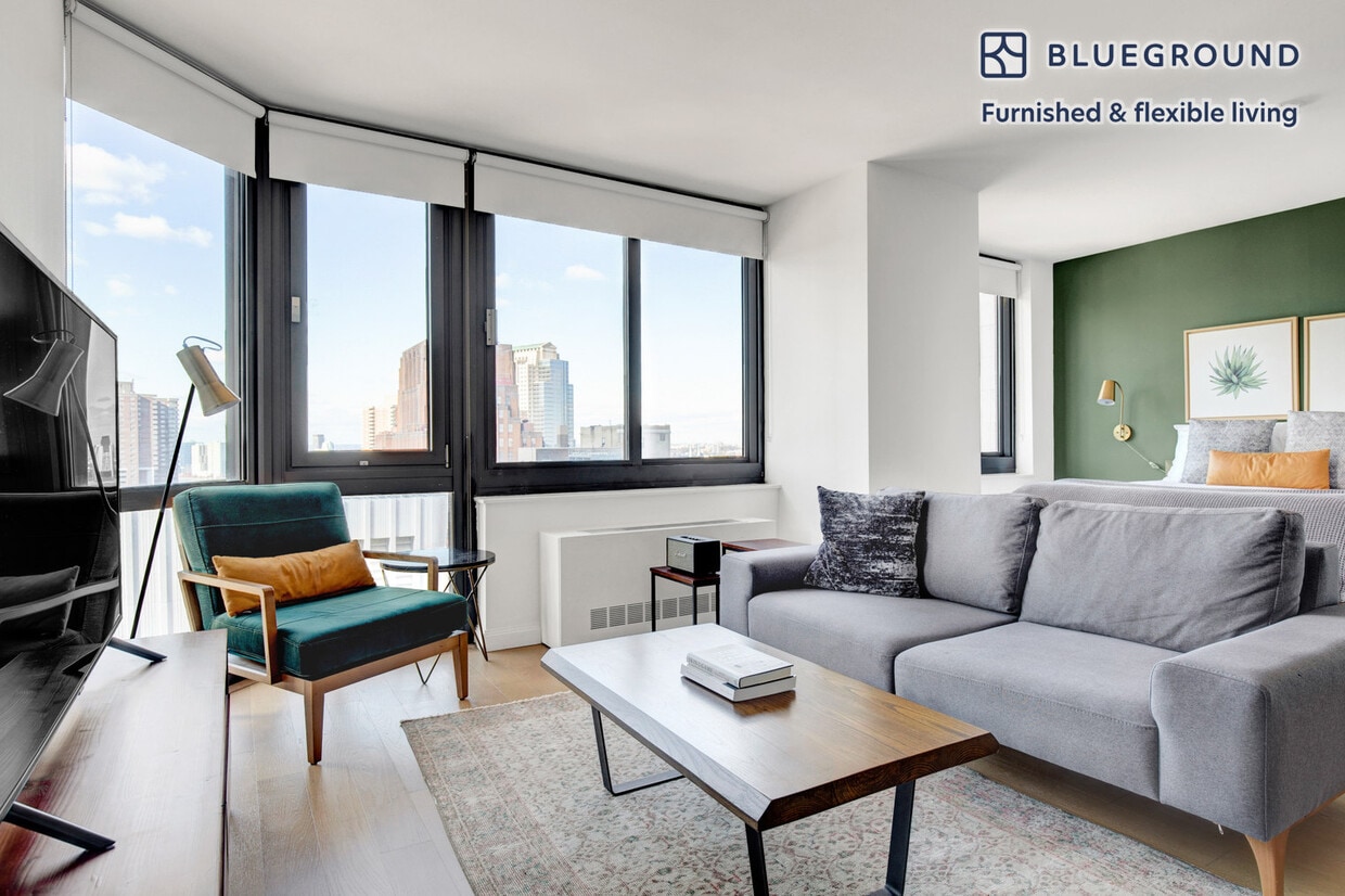 Show up and start living from day one in New York with this cozy studio Blueground apartment. You’ll love coming home to this thoughtfully furnished, beautifully designed, and fully equipped Tribeca home with stunning high floor views over the city. (ID #NYC273) The advertised rate of $8,230/month is the lowest available price, based on a 2 month(s) and 4 day(s) stay with a move-in date of March 16, 2026. If you’re looking for a 1-year stay, the rate is $8,070/month. Rates vary depending on the duration of stay, season, and other parameters. For exact pricing and additional pricing components, please visit our website and enter your desired move-in and move-out dates. The rate is applicable when billed upfront; it can be higher if billed in multiple payments. Brokers are welcome to reach out. Were you looking for an unfurnished lease? Try Blueground instead and upgrade from unfurnished to furnished living: - Furnished at rates comparable to unfurnished - No setup or furniture costs - save thousands - Move-in ready - save time, just bring your suitcase Designed with you in mind Thoughtfully designed with bespoke finishes, modern furnishings, and a fully equipped kitchen, you’ll enjoy that “I’m home” feeling with this Blueground apartment. Whether you’re lounging in your stylish living room streaming the latest and greatest entertainment on the smart TV or premium wireless speaker, or getting some well-earned rest on the superior quality mattress with fully stocked linens, you’ll fall in love with everything this Tribeca apartment has to offer. Sleeping arrangements Queen Bed, 63in/160cm Amenities Building amenities unique to this studio apartment include an on-site: - BBQ Area - Doorman - Dryer in building - Elevator - Swimming pool - Washing machine in building - Lounge - Pets allowed Arrival and ongoing support The entire apartment is yours to enjoy! Throughout your stay, you’ll have access to our Client Experience team through the Blueground App. You can schedule additional cleanings, submit maintenance requests, and view our neighborhood recommendations with just a few taps. We’ll share all details upon confirmation of your stay. Ideally Located This furnished apartment is in the vibrant neighborhood of Tribeca. Formerly an industrial center, nowadays it is considered an artists' mecca, and one of the most exclusive neighborhoods in the city. The award-winning public and private schools draw families to nest nearby. Locals can be seen strolling along the Hudson River or dining at a wine bar. Quaint cafes and inviting green park space make this a great place to call home. Tribeca is one of the more well-rounded and well-connected neighborhoods in Lower Manhattan. By subway, the Financial District is only 10 minutes away. Other things to note Building amenities may have an extra cost. This Blueground apartment has flexible lease options, allowing you to book it for one month, a year, or more. Pets are welcome, though weight limits and breed restrictions apply and may incur fees. Brokes CYOF. We take great pride in ensuring every photo displayed is shot in our own units with our actual furnishings. That said, we regularly refresh our decor and furniture arrangement, which may differ from what’s pictured. [SI]
