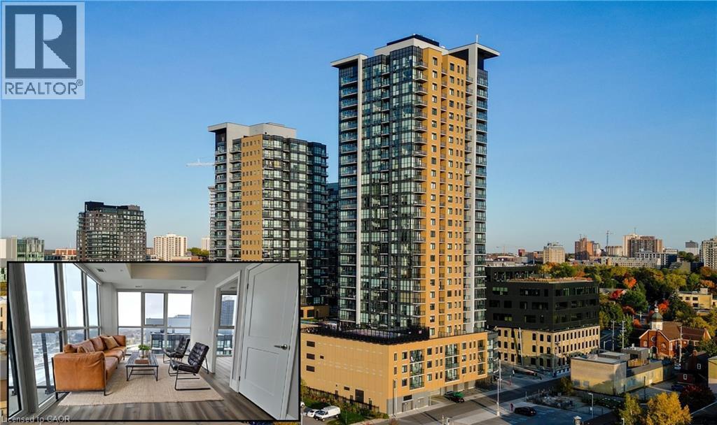STUNNING 1-BEDROOM,1-BATH CONDO IN THE HEART OF DOWNTOWN KITCHENER! Welcome to this bright and modern 25th-floor condo offering exceptional city views. This spacious CORNER unit features an open-concept,carpet-free layout and a private balcony to take in the skyline. The kitchen showcases sleek finishes,and in-suite laundry adds everyday convenience. The bedroom is highlighted by a wall-to-wall,floor-to-ceiling window,while the 4-pc bathroom offers a touch of luxury. Includes 1 underground private parking space. The building provides top-notch amenities,including a gym,media room,rooftop terrace,and a refreshing pool. Ideal for young professionals,this location is just steps from vibrant shops,Kitchener Market,scenic parks,schools,City Hall,and convenient transit options. Please note: hydro and tenant insurance are the responsibility of the tenant(s). Strong credit and a completed application are required. No pets preferred. Available for immediate move-in! (id:52069) ID#: 1750694
