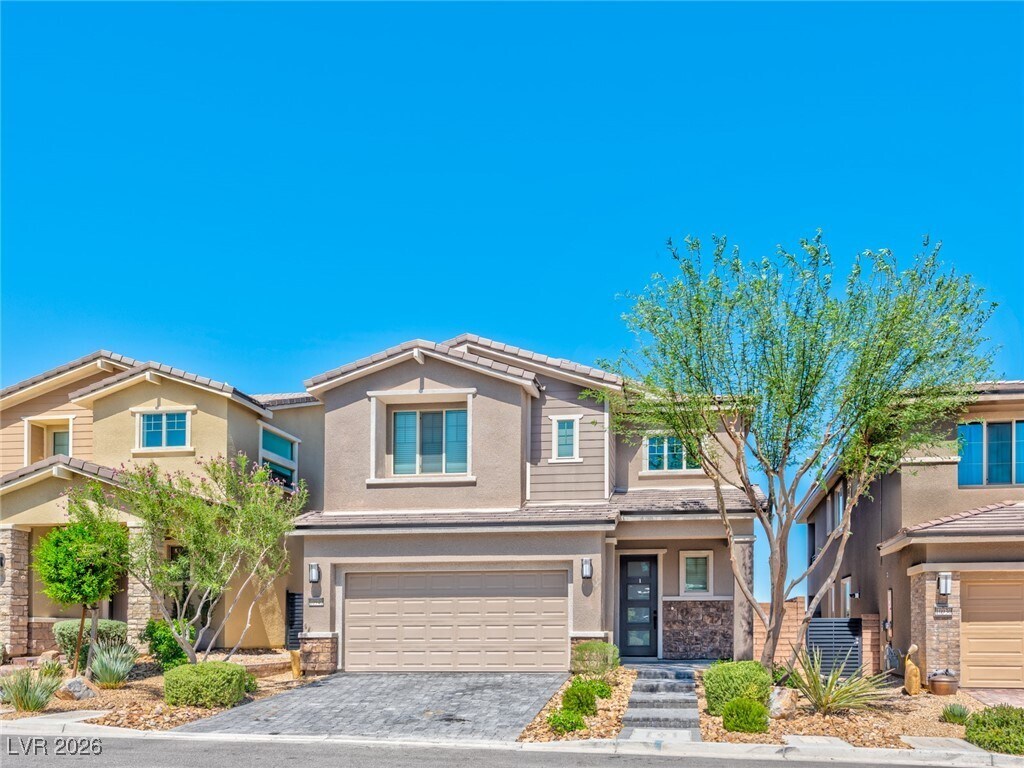 Hermosa casa con acceso controlado en la codiciada comunidad Summerlin Reverence. Esta residencia, de reciente construcción, presenta amplias mejoras en todos sus espacios. La cocina gourmet cuenta con encimeras de cuarzo, una gran isla con barra de desayuno, gabinetes de alta gama, protector contra salpicaduras de azulejos, iluminación colgante, electrodomésticos de acero inoxidable e iluminación empotrada. La acogedora sala familiar ofrece una chimenea a medida con detalles de piedra, gabinetes empotrados y estantes flotantes de madera. En la planta superior se encuentra un espacioso loft con soporte para TV y una práctica lavandería. La suite principal cuenta con un balcón privado con impresionantes vistas a las montañas, la ciudad y el Strip de Las Vegas. El baño principal, estilo spa, incluye una lujosa ducha a ras de suelo, lavabos dobles con encimeras de cuarzo, grifería de alta gama y un amplio vestidor. Disfrute del sereno patio trasero con vistas despejadas a las montañas, la ciudad y el Strip, con un paisajismo desértico de bajo mantenimiento, adoquines y césped artificial.