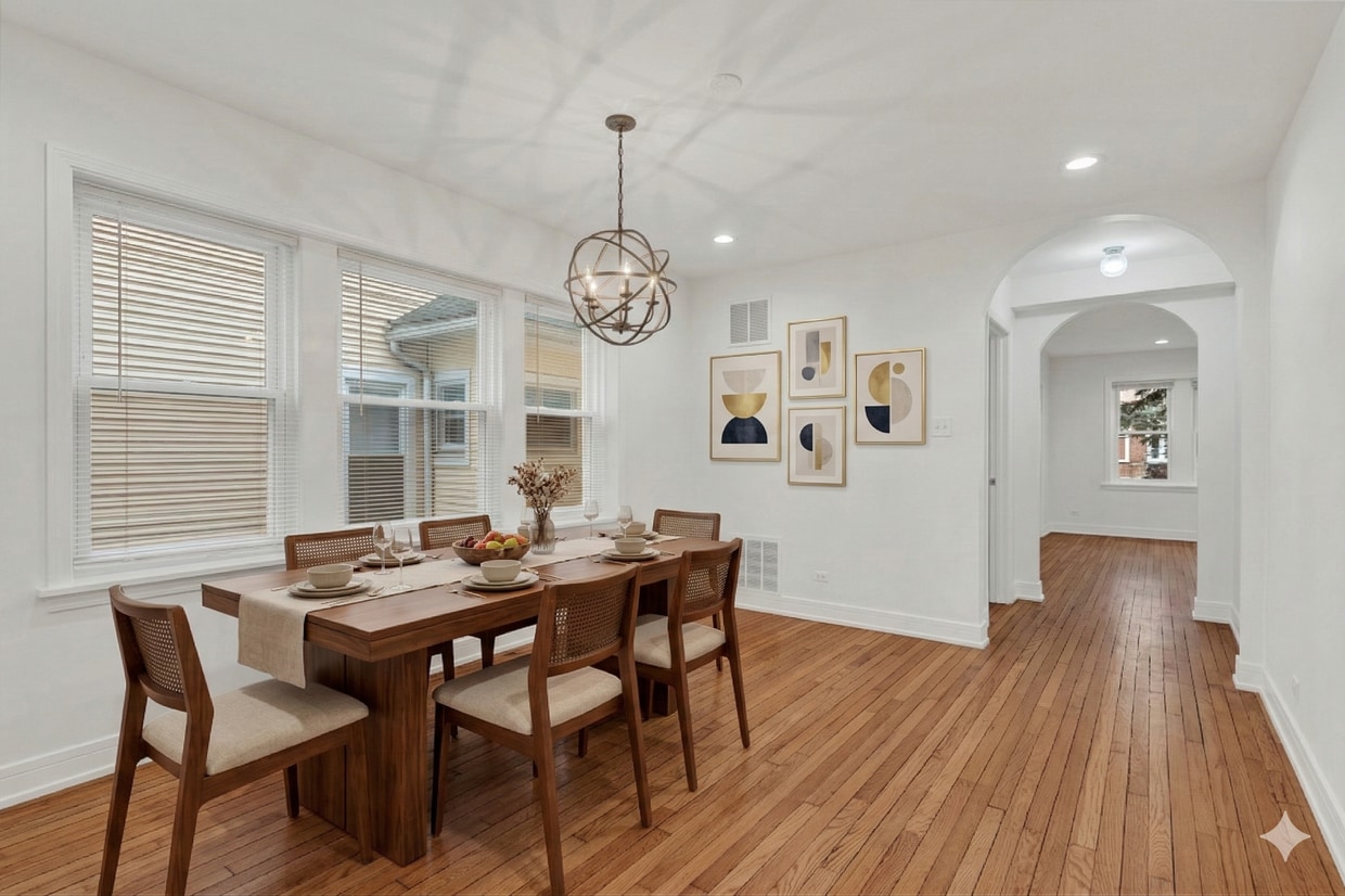 Beautiful first floor 2-bedroom apartment for rent on quiet tree lined street in Evanston that is walking distance to several nearby parks, great school district, less than 10 minutes from downtown Evanston and Lake Michigan. This apartment is fully renovated, flooded with natural light and building has fully fenced yard with 2 car garage. 1 garage parking space included with rent. Electricity, Water and Gas included with rent.