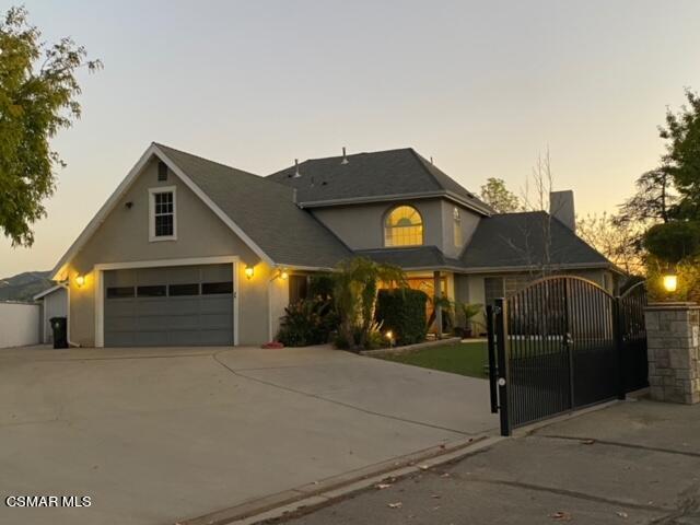 Nestled in the Foothills of the Angeles Crest Forest, this gated estate with beautiful views of the sunsets, city lights, and the Angeles National Golf Course is approx one acre of land. Located in Riverwood Ranch. Approx 3500sf home with four bedrooms and four bathrooms. The kitchen features granite counters, stainless appliances, cherry wood floors, pantry, countertop island bar and nook. The living room opens to the backyard, with 180 degrees of view. Perfect for entertaining, the yard features a large artifical grass area, mature trees and a paver stone patio. Additional family room and formal dining room. Two bedrooms are located downstairs. Beautiful wrought iron/wood staircase leading to the upstairs bedrooms. The primary suite has a walk-in closet, and a large bathroom with a separate shower, spa tub and dual vanity. Enjoy your morning coffee from the private, enclosed lanai just off the primary suite. Features include central air, hardwood floors, recessed lighting, dual pane windows, and vaulted ceilings. Two inside laundry rooms, one up, one down with added storage area. Two car attached garage. Five-car gated driveway. Quick walk to the forest/hiking trails. This unique property is your own private retreat, located just outside the City.