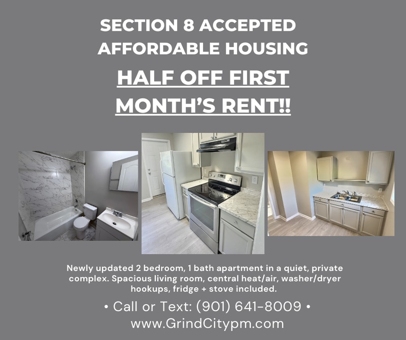 Newly Renovated 2BR/1BA Apartment | Lincoln Apartments HALF OFF FIRST MONTH"S RENT!!!! 1157 North Belvedere Blvd, Memphis 38107 Section 8 & Rental Assistance Welcome – FREE Application & Background Check Perfect for Section 8 voucher holders or anyone seeking a well-maintained home with onsite maintenance and optional utility convenience. Property Features - 2 Bedrooms / 1 Bathroom - Newly Renovated - Central Heat & Air - Spacious Living Room - Refrigerator & Range Included - Washer/Dryer Hookups - Secluded, Private Apartment Community - Onsite Maintenance - $30 Monthly Water/Trash Charge - $600.00 Security Deposit Optional Utility Convenience Program Keep utilities in the owner's name for $20/month service fee + $200 refundable utility deposit. Application Requirements: - Application & Background Check are FREE - Section 8 & Rental Assistance Accepted - Income must be 3× the rent (Section 8 applicants exempt — voucher must cover rent) - No evictions or rental judgments in the last 3 years - All adults (18+) must apply - Criminal background reviewed case-by-case Apply Online Today: Questions? Call/Text