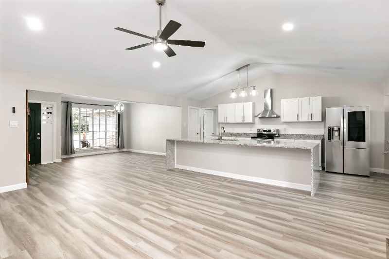 Property Id: 921196 Property features great curb appeal with green grass and large shade tree. Interior features include a BRIGHT and OPEN floor-plan with vaulted ceilings, dining area, & good size family room with fireplace! Beautiful NEW luxury vinyl flooring throughout. Kitchen with ENORMOUS island, NEW granite counters with waterfall, white shaker cabinets, custom tile back splash & NEW LG stainless steel smart appliances! Large primary bedroom with walk-in closet, & NEW recessed lighting. Bathrooms with NEW granite, NEW fixtures & NEW toilets! 3 good size secondary bedrooms. NEW ceiling fans and fixtures throughout! Private back yard with large covered patio PERFECT for entertaining. Freshly painted & move-in ready!
