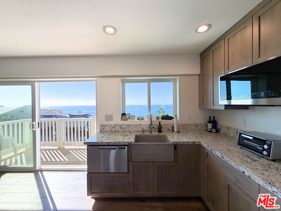 Experience elevated beachfront living in this newly renovated, fully furnished lower-level residence located within a gated coastal enclave. This single-level one-bedroom home showcases ocean views, gentle sea breezes, and golden sunsets. Large glass sliders open onto a private deck, ideal for morning coffee or evening wine and effortless indoor outdoor living. The thoughtfully designed interior features a generous kitchenette with refrigerator, sink, dishwasher, and convection microwave, complemented by a toaster oven and countertop skillet for everyday cooking. The well-proportioned bedroom offers ample space and generous closet storage. The efficiently designed bathroom includes a walk-in shower and abundant built-in storage for linens and personal care items. Additional features include a mounted TV and in-unit washer dryer. Tenant pays for cable/internet only (electricity, trash and water expenses are included in rent). Community offerings include direct access to a private beach and a resort-style swimming pool. Ideally located near iconic surf breaks including County Line and Leo Carillo and just one minute from the legendary Neptune's Net along Pacific Coast Highway. A short scenic drive to Trancas Country Market provides easy access to Malibu's favorite boutiques, gourmet markets, and local dining. Whether as a serene coastal retreat or a full-time residence, this oceanfront home captures quintessential Malibu beach living. MLS# 26642459