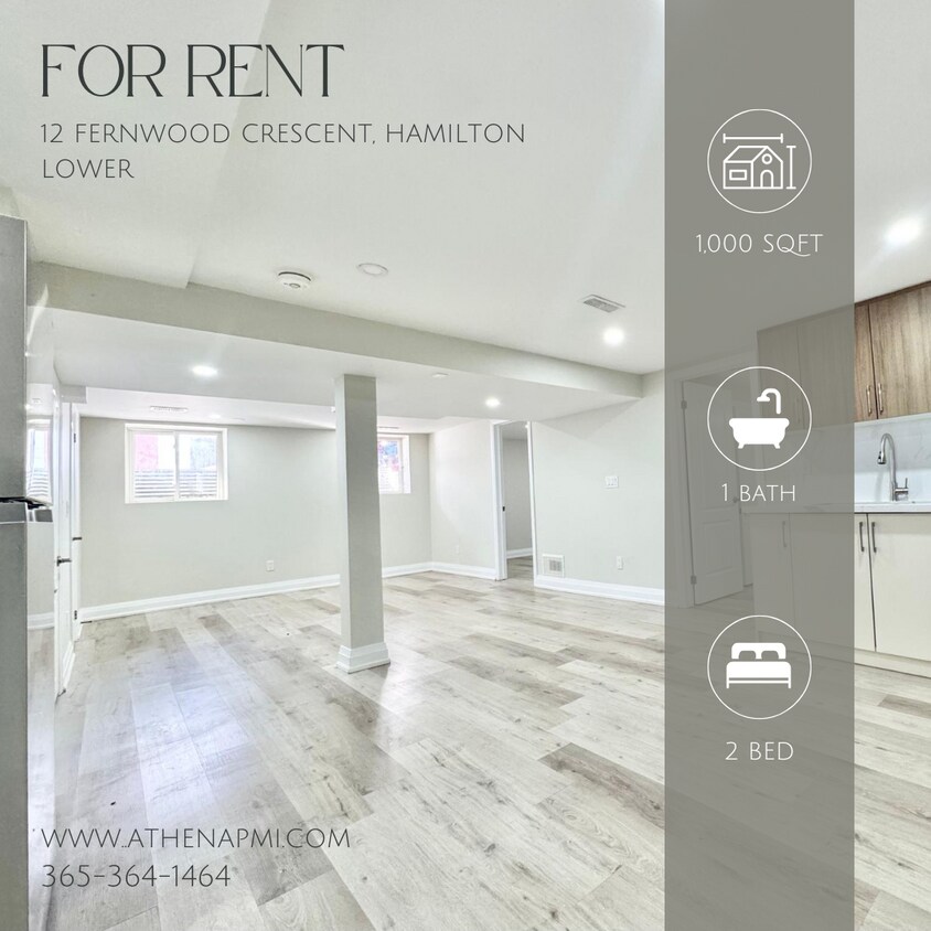 12 Fernwood Crescent, Hamilton – Lower This newly renovated 2-bedroom, 1-bathroom lower-level unit offers modern upgrades, generous living space, and thoughtful touches throughout—perfectly situated in a quiet residential Hamilton neighbourhood. Features: Approx. 1,000 Sq Ft of Living Space 2 Spacious Bedrooms with Closets Fully Renovated Bathroom with Walk-In Shower Open Concept Living, Dining & Kitchen Area Stainless Steel Appliances: Fridge & Stove Ensuite Laundry Private Side Entrance One Driveway Parking Spot Nearby Amenities: Close to schools, parks, and shopping Easy access to major Hamilton roadways and highways Quiet, family-friendly community with mature trees and wide streets Rent: $1,900/month + 45% utilities Availability: Immediate Book a Viewing: Call: Schedule Online: (Copy and paste the link into your browser if needed) Email Virtual Tour Requests: