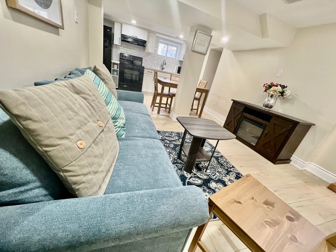A Cozy Furnished Basement with a separate entrance and a separate Laundry W/ A Nice shared Kitchen and living room W/Separate Laundry W/ 7 Bright Windows. Private: [One Bedroom + One full Bath] Available immediately. For $850 + $100 for all utilities ( heat, water, electricity and WiFi) [Kitchen + Living Room +Laundry] Steps to the bus stop, it’s a great location, and it is very convenient for your day-to-day life! It is close to major Highway QEW, 406 Access, 7 minutes drive to Brock University, 3 minutes away from the plaza in which there is a grocery store, banks, pharmacy, and other fast-food. separate laundry, stove, fridge, Washer, Dryer, TV, and Coffee machine. -The first spacious bedroom comes complete with a luxurious Full bed, a closet, and One Full washroom. -The second bedroom comes complete with a Full bed, with three drawers & a closet, and it is occupied by one female. - Dining Area comes with a table and four chairs _living area with a beautiful sofa with a Cheerful Fireplace & TV -Kitchen and all basic essential cooking tools are included