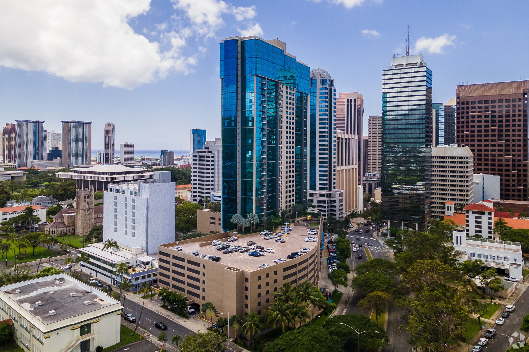 Seeming to rise from the ocean like the mountain peaks that surround it, Downtown Honolulu is a business hub in the middle of paradise. This stunning mix of modern buildings, historic landmarks, and verdant landscape provides the ultimate lifestyle – surf or enjoy the beaches on weekends and walk to work in this capital city during the week.