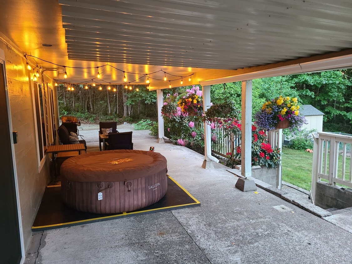 patio with inflatable hot tub