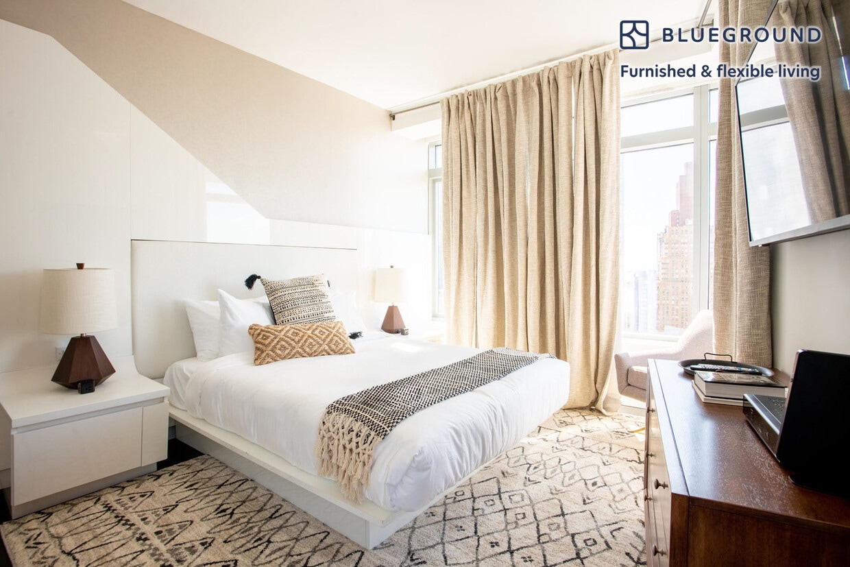 Show up and start living from day one in New York with this lovely studio Blueground apartment. You’ll love coming home to this thoughtfully furnished, beautifully designed, and fully equipped Financial District home with stunning high floor views over the city. (ID #NYC1355) The advertised rate of $4,610/month is the lowest available price, based on a 12 month(s) stay with a move-in date of July 1, 2026. Rates vary depending on the duration of stay, season, and other parameters. For exact pricing and additional pricing components, please visit our website and enter your desired move-in and move-out dates. The rate is applicable when billed upfront; it can be higher if billed in multiple payments. Brokers are welcome to reach out. Were you looking for an unfurnished lease? Try Blueground instead and upgrade from unfurnished to furnished living: - Furnished at rates comparable to unfurnished - No setup or furniture costs - save thousands - Move-in ready - save time, just bring your suitcase Designed with you in mind Gorgeous furniture, fully equipped kitchen, smart TV, and a premium wireless speaker are just a few of the amenities you’ll find inside this studio apartment. Ideally located in New York, you’ll find a lot to love outside as well. When you’re ready to relax, you’ll be happy to discover every Blueground bedroom comes with superior quality mattresses, fully stocked linens, and cozy towels. We handle everything so you can simply show up and start living. This apartment also offers in-apartment laundry. Sleeping arrangements Queen Bed, 63in/160cm Amenities Building amenities unique to this studio apartment include an on-site: - Doorman - Dryer - Elevator - Washing machine - Pets allowed Arrival and ongoing support The entire apartment is yours to enjoy! Throughout your stay, you’ll have access to our Client Experience team through the Blueground App. You can schedule additional cleanings, submit maintenance requests, and view our neighborhood recommendations with just a few taps. We’ll share all details upon confirmation of your stay. Ideally Located This furnished apartment is located in the Financial District, also known as FiDi. Home to Wall Street, One World Trade Center, the South Street Seaport, and Bowling Green it is a constant hub of activity. During the week the sidewalk is always bustling and the restaurants are filled with professionals. The glittering skyscrapers and well-known landmarks make this one of the city’s most recognizable and historic neighborhoods. By subway, Times Square is about 20 minutes away. Other things to note Building amenities may have an extra cost. This Blueground apartment has flexible lease options, allowing you to book it for one month, a year, or more. Pets are welcome, though weight limits and breed restrictions apply and may incur fees. Brokes CYOF. We take great pride in ensuring every photo displayed is shot in our own units with our actual furnishings. That said, we regularly refresh our decor and furniture arrangement, which may differ from what’s pictured. [SI]