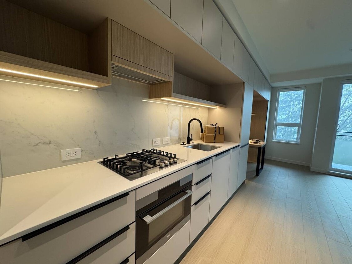Welcome to this luxury junior one-bedroom suite in the highly sought-after CHROMA building in Port Moody, featuring a smart, space-efficient layout with abundant built-in storage, a sleek modern kitchen with gas range, dishwasher and convection microwave, a built-in kitchen table with extendable leaf, full-size in-suite laundry, a luxurious soaker tub, built-in workstation, and a bright living area that opens to a covered patio for year-round enjoyment, plus one secure underground parking stall and a large storage locker, all within a pet-friendly building offering a dog wash station, top-tier fitness centre, hobby room, and impressive rooftop amenities with BBQs, lounge areas, and a community garden.
