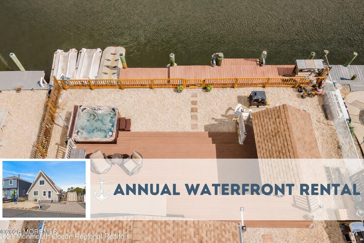 Waterfront living on a lagoon in Toms River! Lagoon-front rentals are limited,making this a unique opportunity for those who enjoy being on the water. This 2 bedroom home plus a bonus room offers a bright open concept layout designed for comfortable living and entertaining. A first floor bedroom and full bathroom provide added flexibility. Kick back by the tiki bar,relax in the hot tub,and enjoy sunset sunset dinners on your back deck. Direct lagoon access makes it easy to head out for boating,jet skiing,or stand up paddle boarding. Located near marinas,restaurants,and the open bay. Available immediately.