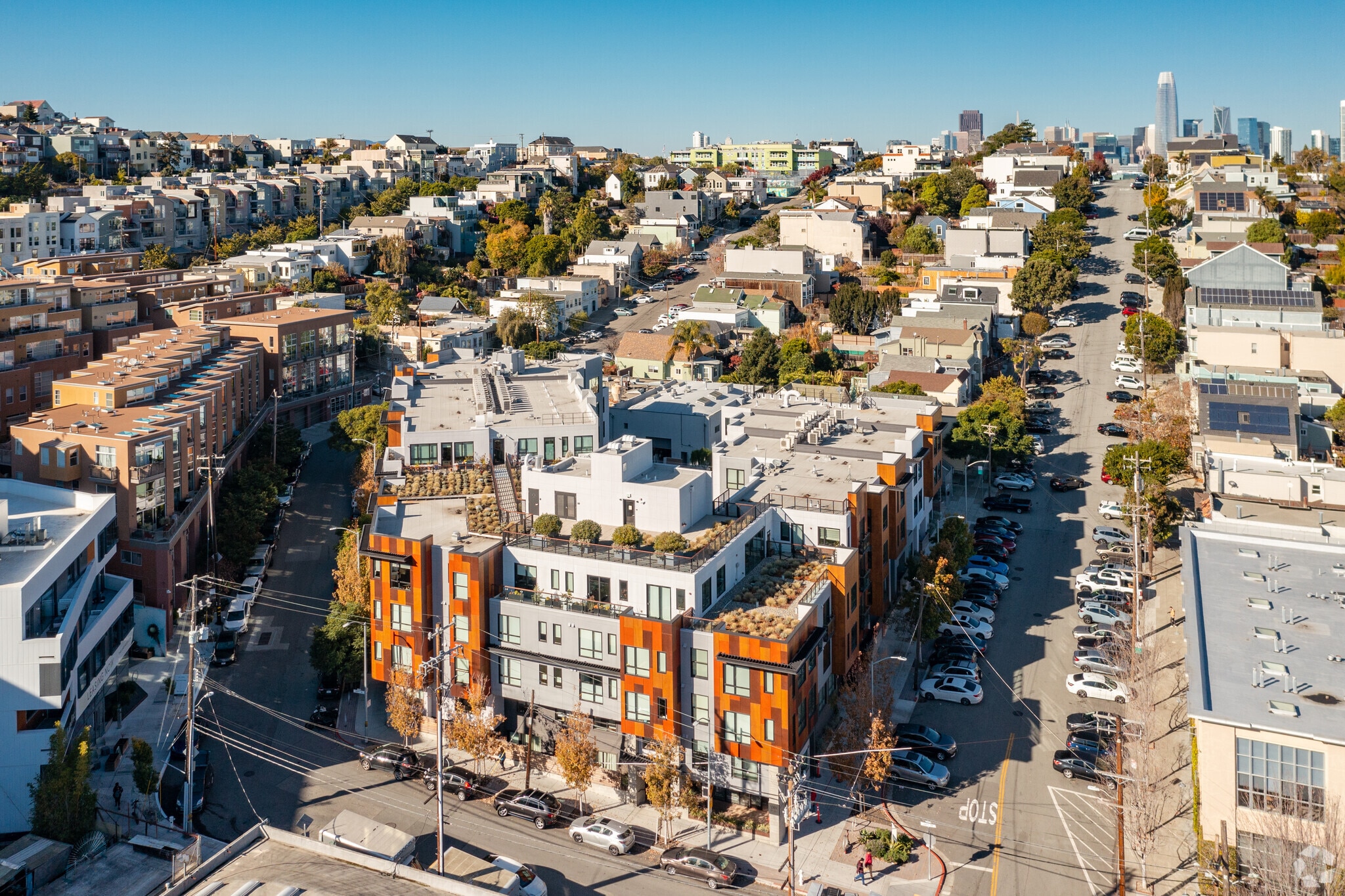 Knox, designed by BDE Architecture and completed in 2017, stands as a modern five-story condominium in the vibrant Potrero Hill neighborhood of San Francisco. With 91 units, this building combines contemporary design elements, including rust-colored cladding and expansive windows, to create a visually striking presence. The flat roof features rooftop gardens and terraces, adding a touch of greenery to the urban landscape. Knox offers a blend of luxury and convenience, making it an ideal choice for those seeking a sophisticated urban lifestyle.