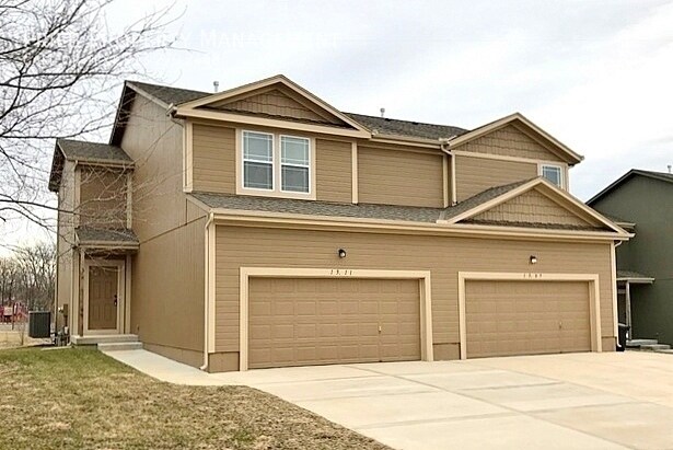 CURRENTLY OCCUPIED. CANNOT BE SEEN AT THIS TIME. SYCAMORE D FLOOR PLAN. EAST FACING GARAGE. Modern Conveniences & Entertainment, All Within Your Reach at Delaware Ridge. Only a 10 minute drive to the Legends & Kansas Speedway. Located at 134th & State Ave. Easy highway access in all directions! Please visit our marketing website Floor Plan Page here: Copy & Paste Our Delaware Ridge duplexes feature gorgeous granite counter tops in the kitchen, a bright dining space and a breakfast bar. With three bedrooms, an open concept main living area and an unfinished basement; there is no lack of space in your new home. Lower Level includes nice open Living Room, Eat-In Kitchen with granite countertops and great cabinet space that includes the dishwasher range and garbage disposal, 1/2 bath off kitchen, pantry, coat closet, entry to Garage and access to the full unfinished basement. Upper Level Includes large Master Bedroom, attached Master Bathroom with double vanity, two secondary bedrooms with good size closets that share the full hall bathroom and linen closet. Utility room with washer/dryer hook-ups is also upstairs on the bedroom level. Full Unfinished Basement works great as extra storage or an additional play space. Please note, interior and exterior colors will vary by unit. Delaware Ridge Community Park includes shelter, playground and historical silo. Elementary school within walking distance. Just North of Cricket Wireless Amphitheatre (Sandstone). Directly West of the Legends Shopping Center & the Kansas Speedway. Casey's General Store at the entry of community. Easy Highway access to 170 & 435 ! Near Shawnee, Leavenworth, Lenexa, Lawrence Topeka and Platte City. Pet Friendly - No Weight Limit. $400.00 Pet Fee (Non-Refundable) for the first pet and a $250.00 Pet Fee (Non-Refundable) for the second pet, plus a monthly pet rent of $60 per month for the first pet and $50 per month for the second pet. Two pet limit per unit. Pet Rent, Pet Fees are Non-Refundable and Non-Negotiable. For more information or to fill out an application, please visit our website: