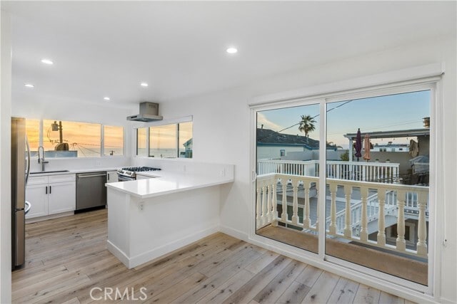 Fully remodeled 2-bedroom, 1-bath apartment offering breathtaking panoramic ocean views. This light-filled residence features a spacious living area and a large modern kitchen equipped with a full suite of top-tier appliances. The updated bathroom includes a Jacuzzi tub and double-sink vanity. Enjoy indoor-outdoor living with a private balcony, plus access to an expansive 1,850 SF shared rooftop deck complete with a natural gas fire pit and sweeping views from Palos Verdes to Point Dume, Malibu. Additional features include in-unit washer and dryer, air conditioning and heating, private storage with shelving, and designated 2-car garage parking. Ideally located just steps from the beach, popular neighborhood restaurants, and local market. Pet friendly. MLS# SB26001455