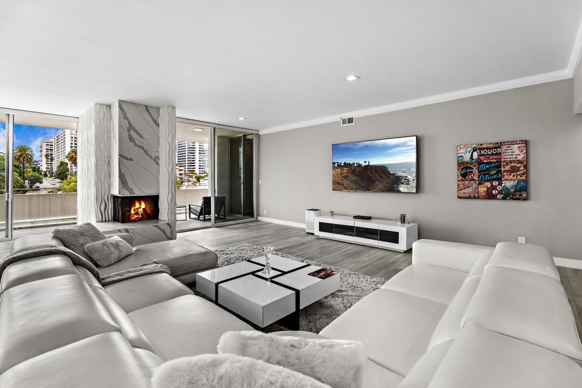 Discover urban luxury in this FULLY FURNISHED contemporary oasis, showcasing a striking blend of modern design and chic finishes. Perfectly located near Westwood Village and Century City, this condo has been remodeled from top to bottom. It is currently the largest 1 bedroom highrise condo for lease in the area boasting nearly 2,000 square feet with the city view balcony. The open concept living space is ideal for both everyday comfort and grand entertaining, with high ceilings that amplify its airy ambiance. The kitchen is a showstopper, featuring Viking appliances, quartz countertops, super high gloss white cabinets, and an island that comfortably seats six. A spacious L shaped white leather couch anchors the living area, perfectly positioned to enjoy the 85 inch Smart Sony TV while taking in the city views. Floor to ceiling sliding glass doors open to a large balcony illuminated by sleek LED lighting, offering a dramatic evening backdrop. The primary bedroom includes a generous walk in closet, and there is ample storage throughout, including hallway closets, a well appointed laundry room with cabinetry, and additional closets in the powder room. A dedicated office area occupies a bright, open corner of the living space, offering its own city view and a vantage point to see the living room, kitchen, and TV - a perfect spot for both work and leisure. This full service building provides 24/7/365 valet parking and security. If you're seeking luxury, location, and modern style in a full service high rise, this is your condo. Schedule a private showing today to experience it for yourself.