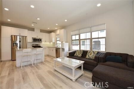 Three Story Townhome in East Cypress Village, Lantana Plan with beautiful and upgraded laminated flooring throughout. Ground level entry, spacious gourmet kitchen with quarts countertop, tile backsplash, stainless steel appliances, recessed lights with center island and living are on second floor. Patio adjacent to dining area and powder room on second floor. Two Master bedrooms on the top floor each boast large walk-in closet and separated by a hallway. Convenient laundry on top floor. Two car side by side attached garage with direct access. Enjoy resort-style recreation amenities including beautiful parks, clubhouse, sparkling swimming pool, spa/hot tub. Very convenient location close to freeway, within walking distance to Ice Skating Rink, sports parks and biking trails. MLS# OC26030622