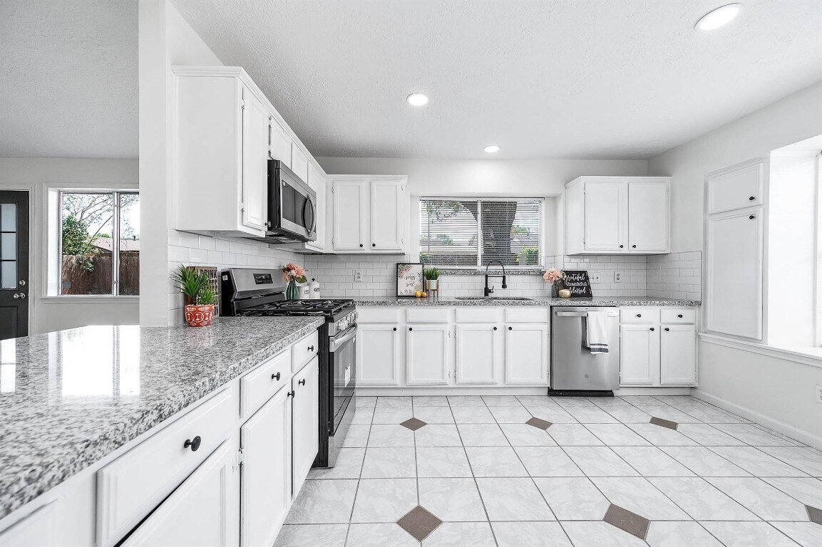 FOR LEASE - Welcome to this beautiful 1-story home 3 beds 2 baths that comes with MANY new items & UPGRADES. The home features new interior paint,beautiful new vinyl floor in common areas and new carpet in the bedrooms. Living room is roomy,kitchen was fully remodeled with granite countertop and modern backsplash,NEW sink and faucet,NEW SS Appliances,modern light fixtures,new ceiling fans. The PRIMARY BEDROOM is spacious. The primary bathroom features a beautiful sliding barn door. NEW granite countertops,modern lighting and plumbing fixtures,walk-in closet! the other full bath also has NEW granite countertop. The exterior features a good size backyard with decking,trimmed mature tree for outdoor gathering. Unbeatable area in the Northwest Houston This one is a MUST SEE! MLS ID 4847162
