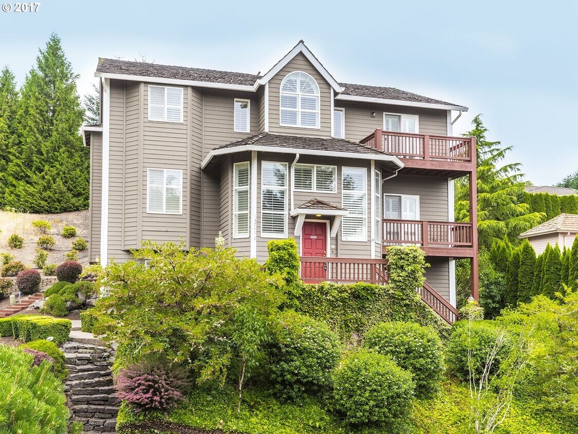 Welcome to your dream home nestled in the hills of the desirable Bull Mountain Neighborhood in Tigard. This beautiful 4 Bed, 3.5 Bath house is designed with comfort, lighting and functionality in mind. This home features an entertainment space, game room, office/flex space, with high ceilings and ample opportunities for storage throughout the home. Walk in to the front door of your new home to the exquisite split-level style entry. The star case on your left will take you to your large entertainment area, garage, and bonus space. Follow the stairs to your right, which will lead you to your main living floor. You will be be greeted by beautiful hardwood flooring and natural lighting throughout the main level. Your main level invites you to a spacious open den living room with an office room equipped with French doors located to your left. Through your living area is your huge gourmet kitchen and nook equipped with all white appliances. The appliance package includes: a refrigerator, wall oven, dishwasher and gas cooktop located on your large kitchen island. Through your kitchen, is the main living area featuring plush carpeting and a gas fireplace providing warmth on those cold winter days. A guest bathroom is located between the kitchen and main living area. Venturing upstairs, you will find your 4 bedrooms. The primary bedroom offers ample natural lighting from the private balcony with a beautiful view of the valley and mountains bellow. Enjoy the luxury of your huge walk-in closet featuring numerous built-in shelves and a private ensuite bathroom equipped with 2 large single sink vanities, a walk-in shower and soaking tub. Your additional bedrooms are equally inviting, spacious in size and offer classic wall closets for storage. Heading back down to the lowest level of your home, you’ll be met with a full-service bar or game room, perfect for hosting friends and family gatherings. You’ll also find your washer and dryer leading you to a full bathroom and carpeted additional media, office, den, or game room. Enjoy access to your huge garage, which boasts floor to ceiling cabinets for additional storage and organization. Heading outside, your large patio deck is surrounded with a beautifully landscaped yard and is perfect for relaxing on warmer days and taking in the sun. Follow the walkway up your backyard to a charming bench overlooking the neighborhood and beautiful surrounding greenery, providing a perfect spot for relaxation or enjoying a lovely novel. Enjoy living near amenities such as Safeway, Crumbl Cookies, New Seasons market, AMC theaters and more! Take a lovely walk through Summerlake City Park and Barrows Park. Mountainside High School and Scholls Heights Elementary are nearby! Call or Text Our Leasing Agent to schedule a showing! English Speaking Spanish Speaking Visit our website to apply and view other homes we have available! Do you need property management services? Maximize your income and cut your costs!