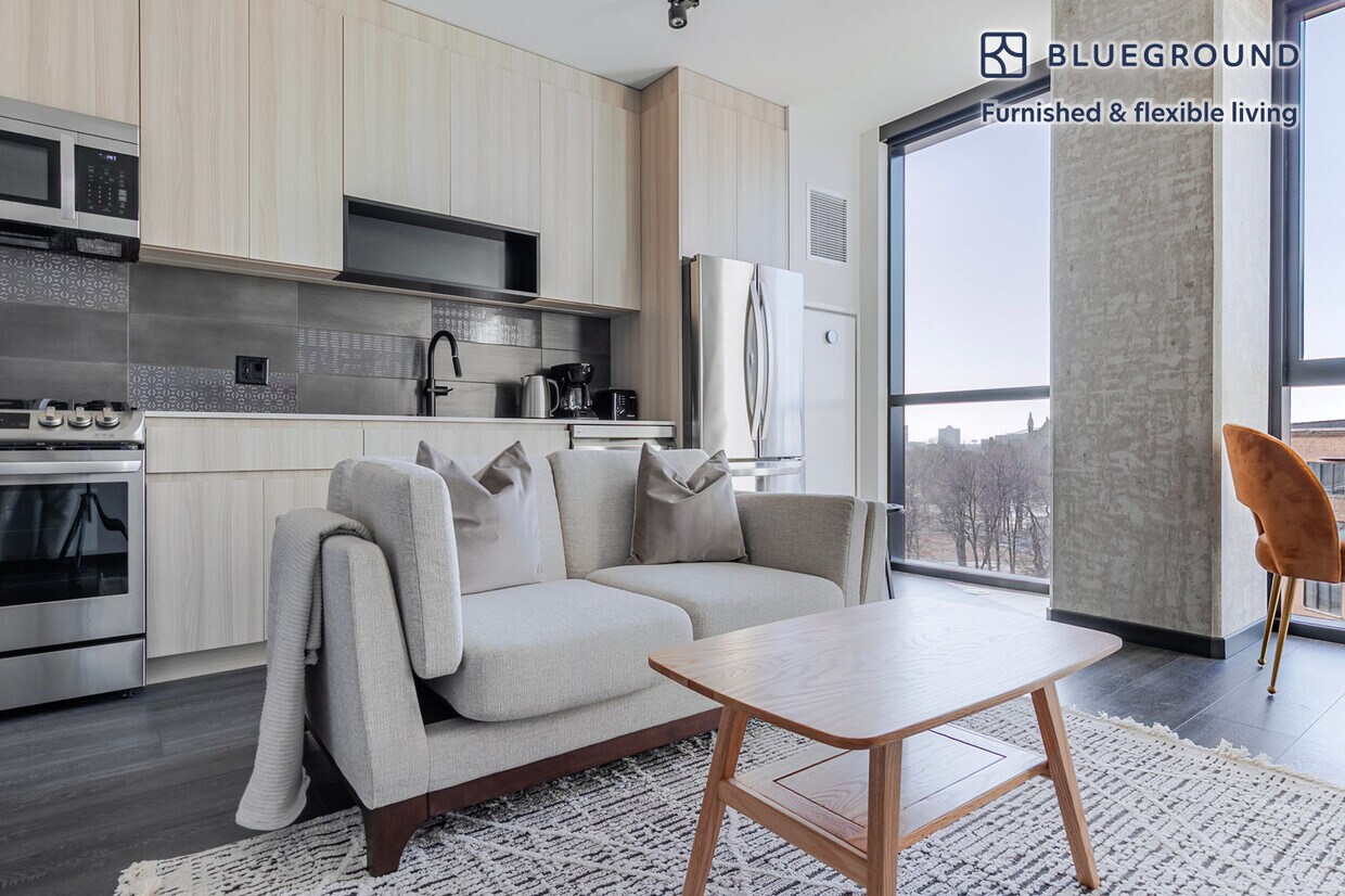 Discover the best of Chicago, with this one bedroom apartment in Fulton Market District. It’ll be easy to simply show up and start living in this furnished apartment with its fully equipped kitchen, living room, and our dedicated, on-the-ground support. (ID #CHI1354) The advertised rate of $2,630/month is the lowest available price, based on a 12 month(s) stay with a move-in date of April 30, 2026. Rates vary depending on the duration of stay, season, and other parameters. For exact pricing and additional pricing components, please visit our website and enter your desired move-in and move-out dates. The rate is applicable when billed upfront; it can be higher if billed in multiple payments. Brokers are welcome to reach out. Were you looking for an unfurnished lease? Try Blueground instead and upgrade from unfurnished to furnished living: - Furnished at rates comparable to unfurnished - No setup or furniture costs - save thousands - Move-in ready - save time, just bring your suitcase Designed with you in mind As with any Blueground apartment, you’ll find a thoughtfully designed space complete with beautiful furniture and a fully equipped kitchen in this one bedroom property. And, thanks to our superior quality mattresses, fully stocked linens, and towels, you can relax knowing you’ll always feel comfortably at home. When you’re ready for some fun, you can take in the Chicago vibes or bring the entertainment to you with the premium wireless speaker or smart TV. This apartment also offers in-apartment laundry. Sleeping arrangements Queen Bed, 63in/160cm Amenities Building amenities unique to this one bedroom apartment include an on-site: - Dryer - Elevator - Swimming pool - Washing machine - Lounge - Pets allowed Arrival and ongoing support The entire apartment is yours to enjoy! Throughout your stay, you’ll have access to our Client Experience team through the Blueground App. You can schedule additional cleanings, submit maintenance requests, and view our neighborhood recommendations with just a few taps. We’ll share all details upon confirmation of your stay. Other things to note Building amenities may have an extra cost. This Blueground apartment has flexible lease options, allowing you to book it for one month, a year, or more. Pets are welcome, though weight limits and breed restrictions apply and may incur fees. We take great pride in ensuring every photo displayed is shot in our own units with our actual furnishings. That said, we regularly refresh our decor and furniture arrangement, which may differ from what’s pictured. [GO]