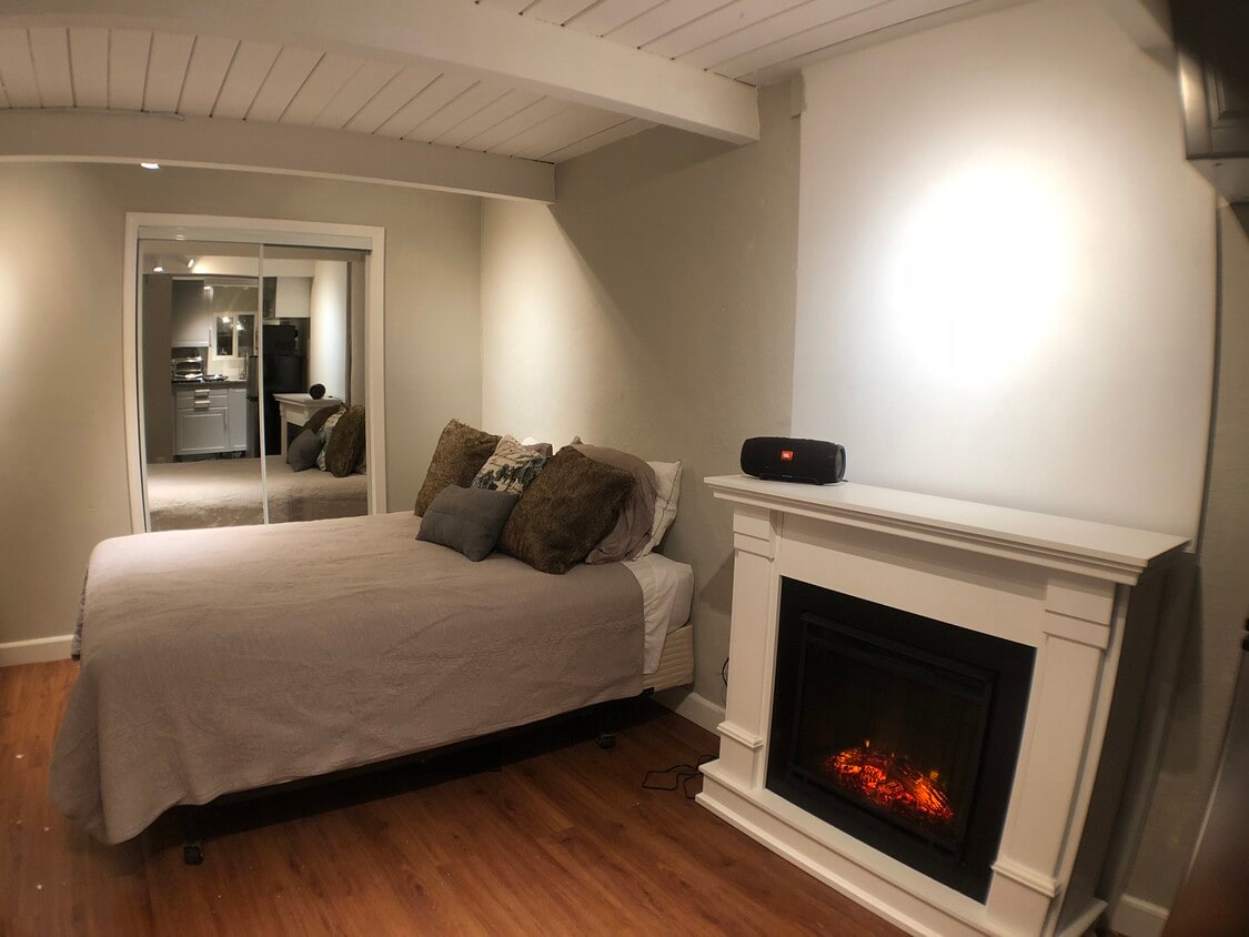 Furnished Studio apartment for rent including private gated entrance, private patio, full bath, and kitchenette including fridge. This studio is connected to a single family home in Menlo Park in Belle Haven, a quiet and safe neighborhood. Walking distance to Meta (right behind MPK 22). As well as a new community center with a pool and soccer field. The Location: Belle Haven neighborhood of Menlo Park, located just off the Dumbarton Bridge, east of 101. Easy and quick access to 101 and 84, perfect for the commute to almost anywhere in the Peninsula (15 mins to San Mateo or Sunnyvale) or even East Bay! Several neighborhood food markets minutes away with Safeway and others less than 10 mins. Bike friendly North or South in any direction. The Studio: The entire space is fairly newly remodeled. 250 square feet with walk-in closet (tons of storage space). The living portion of the space itself is very spacious with a working electric fireplace heater, exposed beam ceilings, recessed lighting and dark wood floors with a queen sized bed, and couch/futon. Plenty of additional space for a desk. Laundry can be picked up and delivered with Rinse (can give a $25 referral for it). Furnished with a Queen Bed with build in storage below (not pictured - but equivalent of a full dresser), as well as a couch futon (not pictured) in unit for your use. Parking: Dedicated driveway space for 1 car right in front of your unit included in rental price. Kitchenette: with a full size sink with pull-out sprayer, garbage disposal, grey cabinets, white marble floors, pantry space. Includes a full fridge, Samsung microwave with grilling function (works like an air fryer), plug in 2 burner electric stove top, and a full size toaster oven for small baking needs. Bathroom:Glass shower, toilet, white marble floors, and modern vanity with storage space. Patio: Gated on both sides and completely private. 120 square feet (6'x20') of outdoor space, with a brick walkway and space for gardening on the side. Sheltered by a lovely large Oak tree for great summer shade. Perfect space to have a small patio table and to host a few guests and or enjoy warm evenings! Rent: $1,825 plus $175 per month for unlimited high speed internet (500mb) and utilities (electricity, water, garbage). First month's rent plus a 1 month security deposit as well as a non-refundable $150 cleaning fee due prior to move in (Pet rent may increase both rent and deposit amounts). $50 renter application (for credit check fees). Flexible start date starting March 1, 2026. Who we are looking for: Single occupant only, professional, reliable and clean. Must pay rent on time and sign at least a 6 month lease. Your space is your private home and you may entertain if you'd like within reason. Overnight guests are permitted as long as they are not staying for extended periods. Small pets may be accommodated (please email with more info, nothing over 30lbs). Available: Mar 1, 2026 If you are interested: Please send us a detailed email of who you are, what you do for work, and what you are looking for in a rental. If you have a pet, please include detailed information about them as well. We will gladly schedule meetings for you to come see the space and meet us to see if the fit seems right. Please send your email about yourself first and we will reply to set something up!