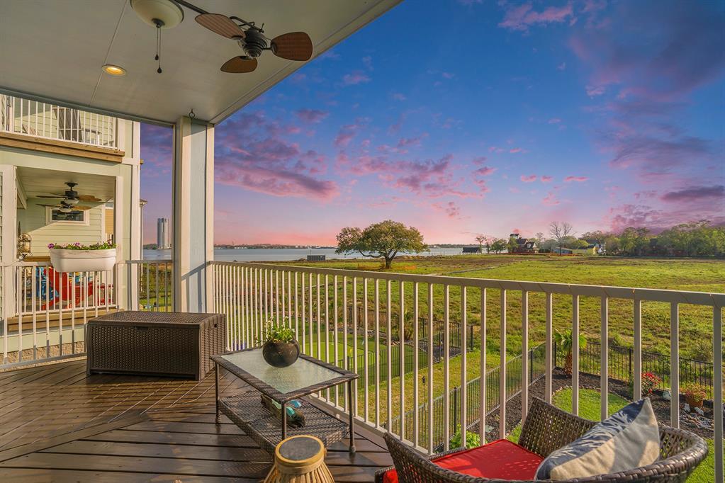 Clear Lake peaceful living is waiting for you! Beautiful Emerald townhome with perfect details. Windows on 3 sides for natural light throughout. 4 balconies capture both the sunrise and sunset on both levels, plus a carved concrete patio and lush backyard provide more Clear Lake views! The main floor is fully open-concept - Chef's kitchen at center with sit-up island, 5-burner gas stovetop and hood, 42" uppers, crown molding, pots and pans drawers, oversized pantry. From the Living Room, California sliders open onto a spacious balcony overlooking the back yard. Also on the main floor, built-in bar with wine cooler, Study, half-bath. 2 bedrooms up with full ensuites, balconies. Upgrades & Features: All 4 balconies have durable stained wood, windows have solar roller shades, main floor is fully tiled, extended carved concrete patio downstairs, flagstone accents in the yard, lush landscape, 4-car tandem garage with epoxy floors and pass-thru to back patio. Call for your private showing!