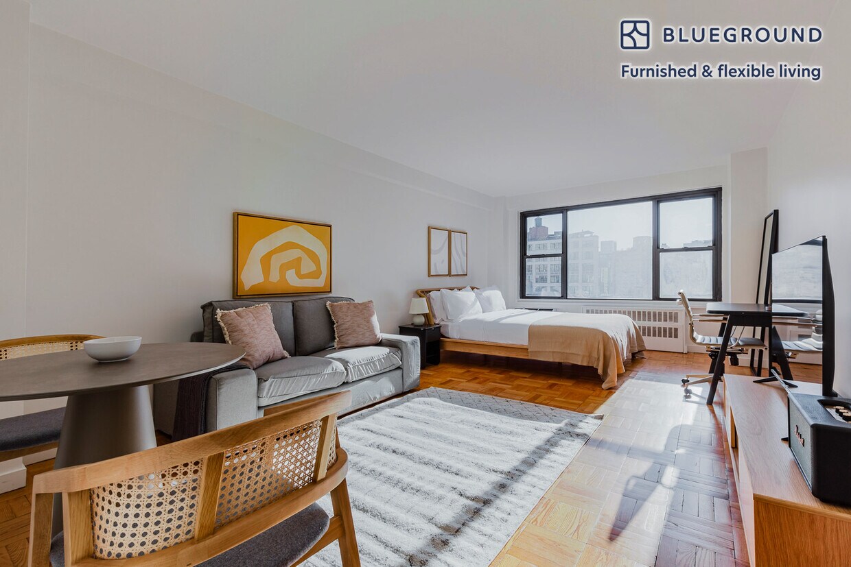 Show up and start living from day one in New York with this stylish studio Blueground apartment. You’ll love coming home to this thoughtfully furnished, beautifully designed, and fully equipped East Village home with stunning high floor views over the city. (ID #NYC1701) The advertised rate of $5,320/month is the lowest available price, based on a 12 month(s) stay with a move-in date of July 15, 2026. Rates vary depending on the duration of stay, season, and other parameters. For exact pricing and additional pricing components, please visit our website and enter your desired move-in and move-out dates. The rate is applicable when billed upfront; it can be higher if billed in multiple payments. Brokers are welcome to reach out. Were you looking for an unfurnished lease? Try Blueground instead and upgrade from unfurnished to furnished living: - Furnished at rates comparable to unfurnished - No setup or furniture costs - save thousands - Move-in ready - save time, just bring your suitcase Designed with you in mind As with any Blueground apartment, you’ll find a thoughtfully designed space complete with beautiful furniture and a fully equipped kitchen in this studio property. And, thanks to our superior quality mattresses, fully stocked linens, and towels, you can relax knowing you’ll always feel comfortably at home. When you’re ready for some fun, you can take in the New York vibes or bring the entertainment to you with the premium wireless speaker or smart TV. Sleeping arrangements Queen Bed, 63in/160cm Amenities Building amenities unique to this studio apartment include an on-site: - Doorman - Dryer in building - Elevator - Washing machine in building - Pets allowed Arrival and ongoing support The entire apartment is yours to enjoy! Throughout your stay, you’ll have access to our Client Experience team through the Blueground App. You can schedule additional cleanings, submit maintenance requests, and view our neighborhood recommendations with just a few taps. We’ll share all details upon confirmation of your stay. Ideally Located This rental is located in NYC’s East Village. Situated east of Bowery between Houston and 14th Street, it has everything to offer. From bars to bookshops, and cafes to clubs, it is undoubtedly a vibrant and enticing neighborhood. The area is simultaneously stylish and laid-back. From the early hours of the morning until late at night, there is always something happening in the East Village. From here, Times Square is 30 minutes away by subway. Other things to note This Blueground apartment has flexible lease options, allowing you to book it for one month, a year, or more. Pets are welcome, though weight limits and breed restrictions apply and may incur fees. Brokes CYOF. We take great pride in ensuring every photo displayed is shot in our own units with our actual furnishings. That said, we regularly refresh our decor and furniture arrangement, which may differ from what’s pictured. [SI]