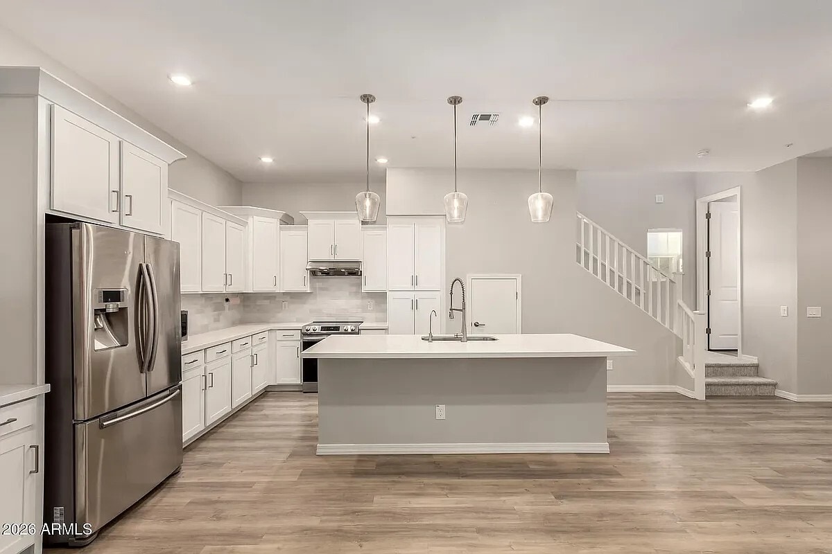 Coveted corner lot home in the intimate Andalucia Villas! Enjoy a great curb appeal, low-maintenance landscaping, pavers, and a community pool. Inside, an open floor plan with tall ceilings, recessed lighting, and wood-look floors flows seamlessly for easy entertaining. The sophisticated white kitchen showcases staggered cabinets, tile backsplash, quartz countertops, SS appliances, and a large island. Powder room on the main level, plush carpet throughout the second floor, and bathrooms in each bedroom are worth mentioning. The large primary suite features an ensuite with a dual vanity. The side patio offers a versatile space for leisure or fun. What's not to like? Close to shops & restaurants, easy access to 202 freeways, and short commute to Santan Village, Downtown Gilbert/Chandler! *Long-term lease preferred. *Currently also listed for sale, but owner is open to renting.