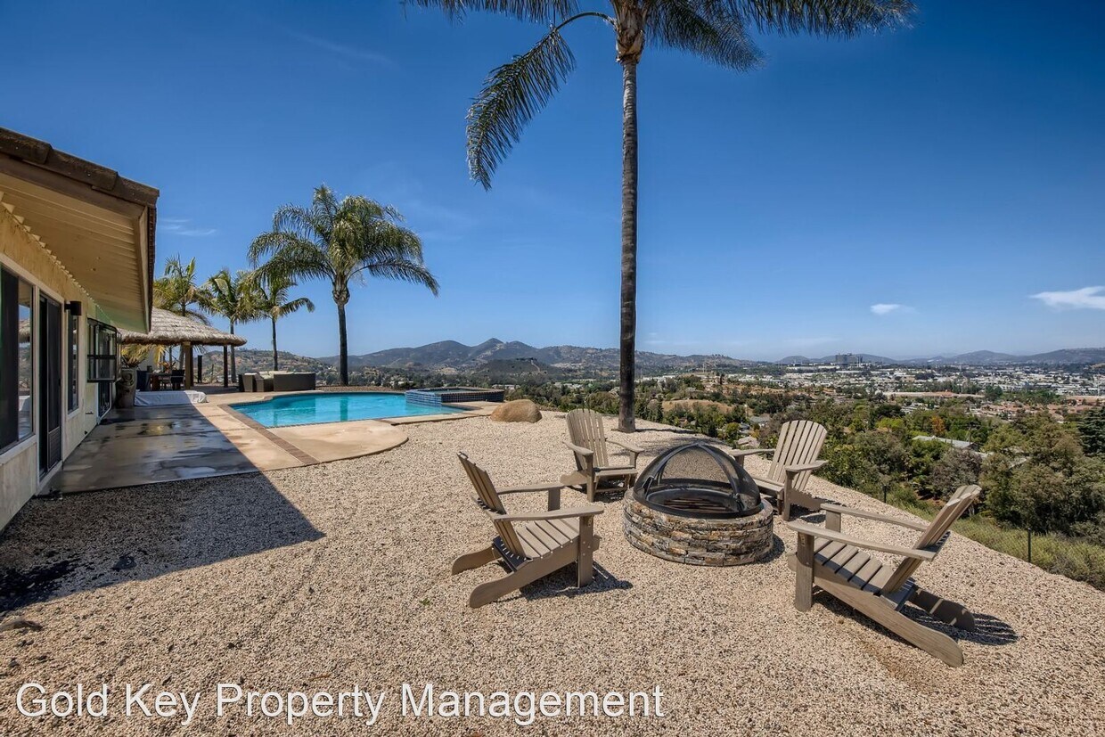 - Beautiful Views from the Backyard of this 4 Bedroom Home in Escondido! - Renter-Friendly Rental House Available in Candlelight Hills Community! Perched atop the Escondido Valley in the executive "Candlelight Hills" community, you will find 1516 Eagle Glen. This home in a gated community offers a private location at the end of the cul-de-sac with forever views and a relaxing oasis in the backyard. The 2,003 SqFt home incorporates the ultimate Southern California lifestyle. A 12-foot La Cantina door connects the outdoor pool area and patio with the kitchen and dining area, offering the ultimate in indoor/outdoor entertaining and fun. Inside, you will find a spacious primary bedroom and bath with 3 additional bedrooms, a bath, and an interior laundry room. The vaulted ceilings in the living room, kitchen, dining, and master bedroom add to the voluminous feel of this home. The highlight of this home is the backyard, wowing you with a 180° view. The views can be enjoyed from your pool, sitting in the hot tub, gathered around the fire pit, enjoying the cool breezes under the 22-foot custom palapa, or from the living room, kitchen, or dining room. Additional amenities include a large 3-car garage with new garage doors, 5.0 KWH solar system, play structure, newer HVAC system, custom ceiling fans, new windows, and new exterior paint. Community amenities include direct access to hiking and walking trails, tennis courts, pickleball courts, volleyball court, tot lots, and peaceful green spaces. There is also easy access to freeways from this neighborhood. No pets accepted. Tenant pays for water, sewer, trash, gas, electricity, cable/WiFi. Rent: $4,500 per month Security Deposit: $4,500.00 Square Footage: 2,003 esf. Available August 7th, 2023 Application Requirements for Each Applicant: - $42 Application Fee for all adults over 18 yrs old - Credit Score of 680 or Higher - No Evictions - No Bankruptcies - Income Requirement of $11,250 per month - Income Verification (at least 2 months of paycheck stubs or 2 years of tax returns) - Employment Verification - Rental History Verification (at least 2 years) Please visit our website to schedule a showing today! Gold Key Property Management No Pets Allowed (RLNE7358822) Other Amenities: Other (canyon views, fire pit, playground, solar panels, palapa, jacuzzi, la cantina door system, gardener, pool service), Pool, Garage. Appliances: Dishwasher, Refrigerator, Range, Oven, Washer & Dryer, Microwave. Pet policies: No Dogs Allowed, No Cats Allowed.