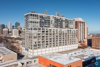 Dearborn Tower stands as an 18-story residential building completed in 2001. Located at 1530 S State Street, this modern high-rise features 317 condo units. The building's straightforward, functional design with a mix of glass and concrete facade offers a contemporary urban living experience in the vibrant South Loop neighborhood.