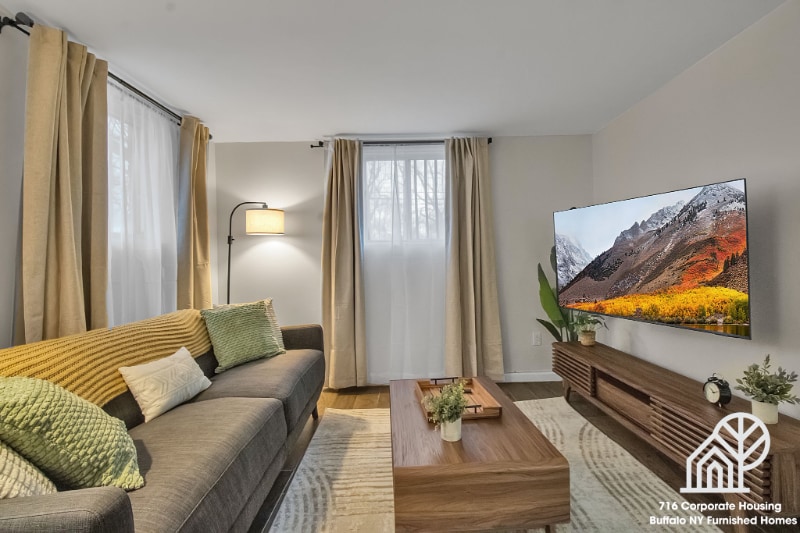 Property Id: 1748554 Are you a travel professional or a student? Message us now for potential student and/or employee discounts. Working at the Bills stadium? An additional discount is given for referrals! The space: Welcome to our cozy, fully furnished 2-bedroom apartment in Lackawanna, complete with new appliances and furnishings. Enjoy the convenience of a designated parking spot in our spacious driveway. Each bedroom features a queen-size bed, dresser, and blackout curtains. The kitchen is fully equipped with all the essentials you might need. Including High-speed Internet (one gigabyte). Additional parking is available in the back lot, and there's free access to a washer and dryer. * Queen size beds * Lots of FREE parking * FREE washer & dryer * High-speed Internet * Fully equipped kitchen & basic essentials * Equipped long-term stays We also offer 1-bedroom apartments and have fully furnished homes located throughout Buffalo! 716 Corporate Housing • Buffalo NY Furnished Homes