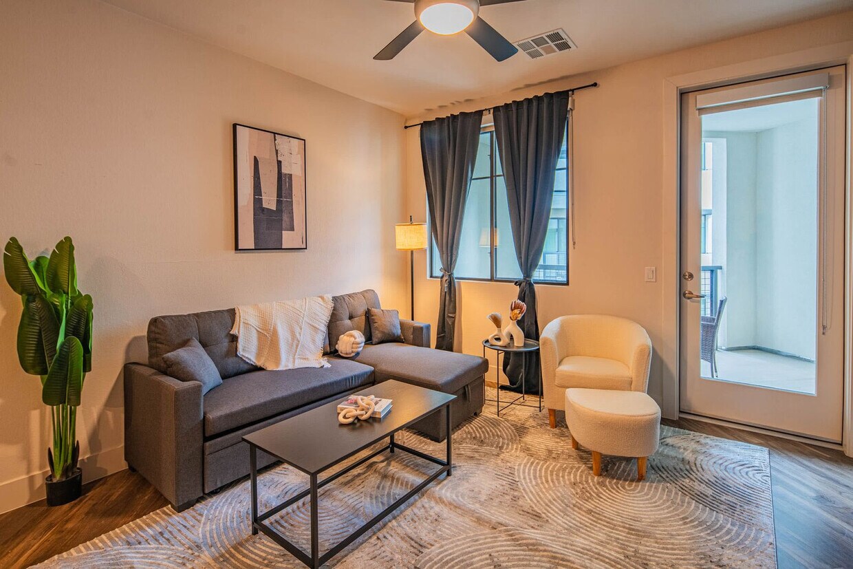 The advertised rate of $2,819/month is the lowest available price, based on a 1 month(s) stay with a move-in date of June 3, 2026. Rates vary depending on the duration of stay, season, and other parameters. For exact pricing and additional pricing components, please visit our website and enter your desired move-in and move-out dates. The rate is applicable when billed upfront; it can be higher if billed in multiple payments. Experience Scottsdale living in this chic apartment, steps from Old Town, nightlife, award-winning restaurants, golf courses, shops and local attractions. With its central location, exploring Arizona and nearby destinations is effortless. Feel at home in this stylish retreat to relax and recharge. The 1-bedroom/1-bath unit features an innovative open-concept design that blends the living and dining areas with the kitchen, creating a modern and sleek living experience. The living room features stylish interior design with carefully picked amenities and decorations, a sofa bed and chair, a 4K 58" HDR smart TV, and a coffee table. The fully equipped kitchen includes a microwave, stove, oven, refrigerator/freezer, dishwasher, toaster, coffee maker and coffee essentials, electric kettle, sink with hot and cold water, glasses, silverware, pots and pans, and a dining table with chairs. The inviting full bathroom is completely private and separated from the main room and is stocked with essential toiletries. The bedroom features two queen-size beds with pillows, linens, and sheets, a 43" smart TV, reading lamps, and an office desk and chair. Only 1 parking spot is included. There may be additional parking in garages or street nearby. Nestled in the heart of Scottsdale, this neighborhood offers a perfect blend of comfort and convenience and is an ideal choice for travelers seeking a luxurious desert escape with easy access to the best the city has to offer. Enjoy a peaceful stay in this upscale, residential area where tree-lined streets and well-maintained properties create a tranquil environment perfect for relaxation. The nearby McDowell Sonoran Preserve offers miles of scenic hiking trails and stunning desert vistas. Just a short drive away, you'll find Scottsdale's vibrant dining scene and trendy boutiques. With several world-class golf courses nearby, you can enjoy a round of golf surrounded by breathtaking desert landscapes. Scottsdale is known for its rich cultural scene, including art galleries, museums, and unique festivals. Enjoy quick access to main routes like the 101 Freeway, making it easy to reach other parts of Scottsdale and the greater Phoenix area. The Valley Metro bus system connects you to key spots in and around the city, with bus stops just a short drive from the property. The area is pedestrian- and bike-friendly, featuring well-kept sidewalks and dedicated bike lanes. For a more scenic ride, nearby trails and pathways offer a great way to explore. Top Scottsdale highlights—shopping districts, restaurants, and golf courses—are just minutes away. Guest verification is required, and all guests must be 23 years old and above. If you are found to have brought pets without prior notification, there will be a $500 fee. There is a fee if the noise monitors are tampered with. Security cameras are in the hallways for security. [SI]