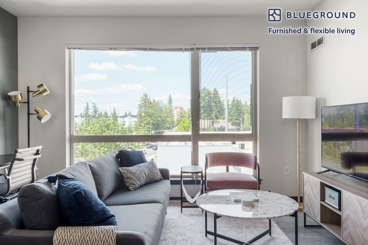 Feel at home wherever you choose to live with Blueground. You’ll love this cozy Northeast Bellevue furnished one bedroom apartment with its modern decor, fully equipped kitchen, and pretty living room with great views. Ideally located, you’re close to all the best that Bellevue has to offer! (ID #SEA423) The advertised rate of $2,320/month is the lowest available price, based on a 1 month(s) and 17 day(s) stay with a move-in date of March 4, 2026. If you’re looking for a 1-year stay, the rate is $2,650/month. Rates vary depending on the duration of stay, season, and other parameters. For exact pricing and additional pricing components, please visit our website and enter your desired move-in and move-out dates. The rate is applicable when billed upfront; it can be higher if billed in multiple payments. Brokers are welcome to reach out. Were you looking for an unfurnished lease? Try Blueground instead and upgrade from unfurnished to furnished living: - Furnished at rates comparable to unfurnished - No setup or furniture costs - save thousands - Move-in ready - save time, just bring your suitcase Designed with you in mind As with any Blueground apartment, you’ll find a thoughtfully designed space complete with beautiful furniture and a fully equipped kitchen in this one bedroom property. And, thanks to our superior quality mattresses, fully stocked linens, and towels, you can relax knowing you’ll always feel comfortably at home. When you’re ready for some fun, you can take in the Bellevue vibes or bring the entertainment to you with the premium wireless speaker or smart TV. This apartment also offers in-apartment laundry. Sleeping arrangements King Bed, 70.8in/180cm Amenities Building amenities unique to this one bedroom apartment include an on-site: - Dryer - Elevator - Washing machine - Lounge - Parking - Pets allowed - Rooftop BBQ Arrival and ongoing support The entire apartment is yours to enjoy! Throughout your stay, you’ll have access to our Client Experience team through the Blueground App. You can schedule additional cleanings, submit maintenance requests, and view our neighborhood recommendations with just a few taps. We’ll share all details upon confirmation of your stay. Other things to note Building amenities may have an extra cost. This Blueground apartment has flexible lease options, allowing you to book it for one month, a year, or more. Pets are welcome, though weight limits and breed restrictions apply and may incur fees. Parking is offered based on availability and is subject to a fee. We take great pride in ensuring every photo displayed is shot in our own units with our actual furnishings. That said, we regularly refresh our decor and furniture arrangement, which may differ from what’s pictured. [SI]