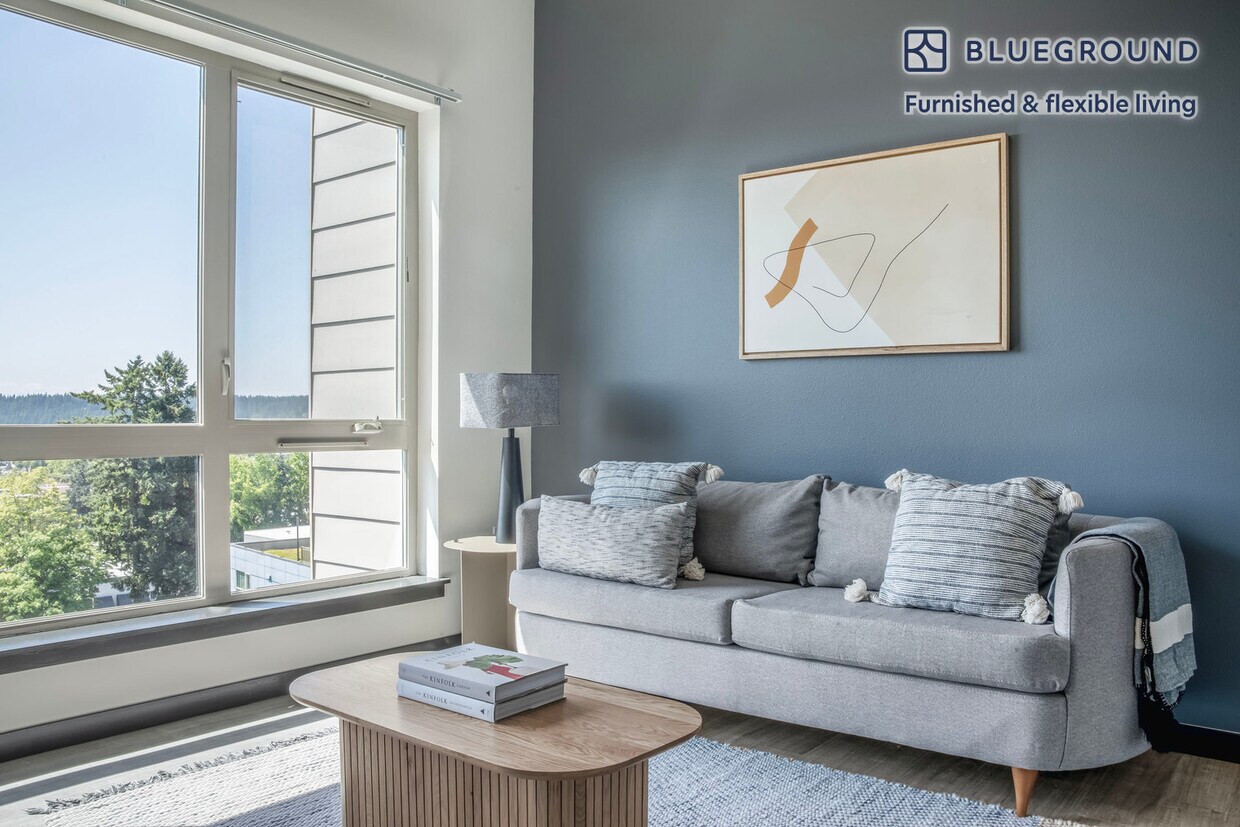 Discover the best of Bellevue, with this one bedroom apartment in Northeast Bellevue with views over the city. It’ll be easy to simply show up and start living in this furnished apartment with its fully equipped kitchen, living room, and our dedicated, on-the-ground support. (ID #SEA617) The advertised rate of $2,590/month is the lowest available price, based on a 12 month(s) stay with a move-in date of May 2, 2029. Rates vary depending on the duration of stay, season, and other parameters. For exact pricing and additional pricing components, please visit our website and enter your desired move-in and move-out dates. The rate is applicable when billed upfront; it can be higher if billed in multiple payments. Brokers are welcome to reach out. Were you looking for an unfurnished lease? Try Blueground instead and upgrade from unfurnished to furnished living: - Furnished at rates comparable to unfurnished - No setup or furniture costs - save thousands - Move-in ready - save time, just bring your suitcase Designed with you in mind As with any Blueground apartment, you’ll find a thoughtfully designed space complete with beautiful furniture and a fully equipped kitchen in this one bedroom property. And, thanks to our superior quality mattresses, fully stocked linens, and towels, you can relax knowing you’ll always feel comfortably at home. When you’re ready for some fun, you can take in the Bellevue vibes or bring the entertainment to you with the premium wireless speaker or smart TV. This apartment also offers in-apartment laundry. Sleeping arrangements Queen Bed, 63in/160cm Amenities Building amenities unique to this one bedroom apartment include an on-site: - Dryer - Elevator - Washing machine - Lounge - Parking - Pets allowed - Rooftop BBQ Arrival and ongoing support The entire apartment is yours to enjoy! Throughout your stay, you’ll have access to our Client Experience team through the Blueground App. You can schedule additional cleanings, submit maintenance requests, and view our neighborhood recommendations with just a few taps. We’ll share all details upon confirmation of your stay. Other things to note Building amenities may have an extra cost. This Blueground apartment has flexible lease options, allowing you to book it for one month, a year, or more. Pets are welcome, though weight limits and breed restrictions apply and may incur fees. Parking is offered based on availability and is subject to a fee. We take great pride in ensuring every photo displayed is shot in our own units with our actual furnishings. That said, we regularly refresh our decor and furniture arrangement, which may differ from what’s pictured. [SI]