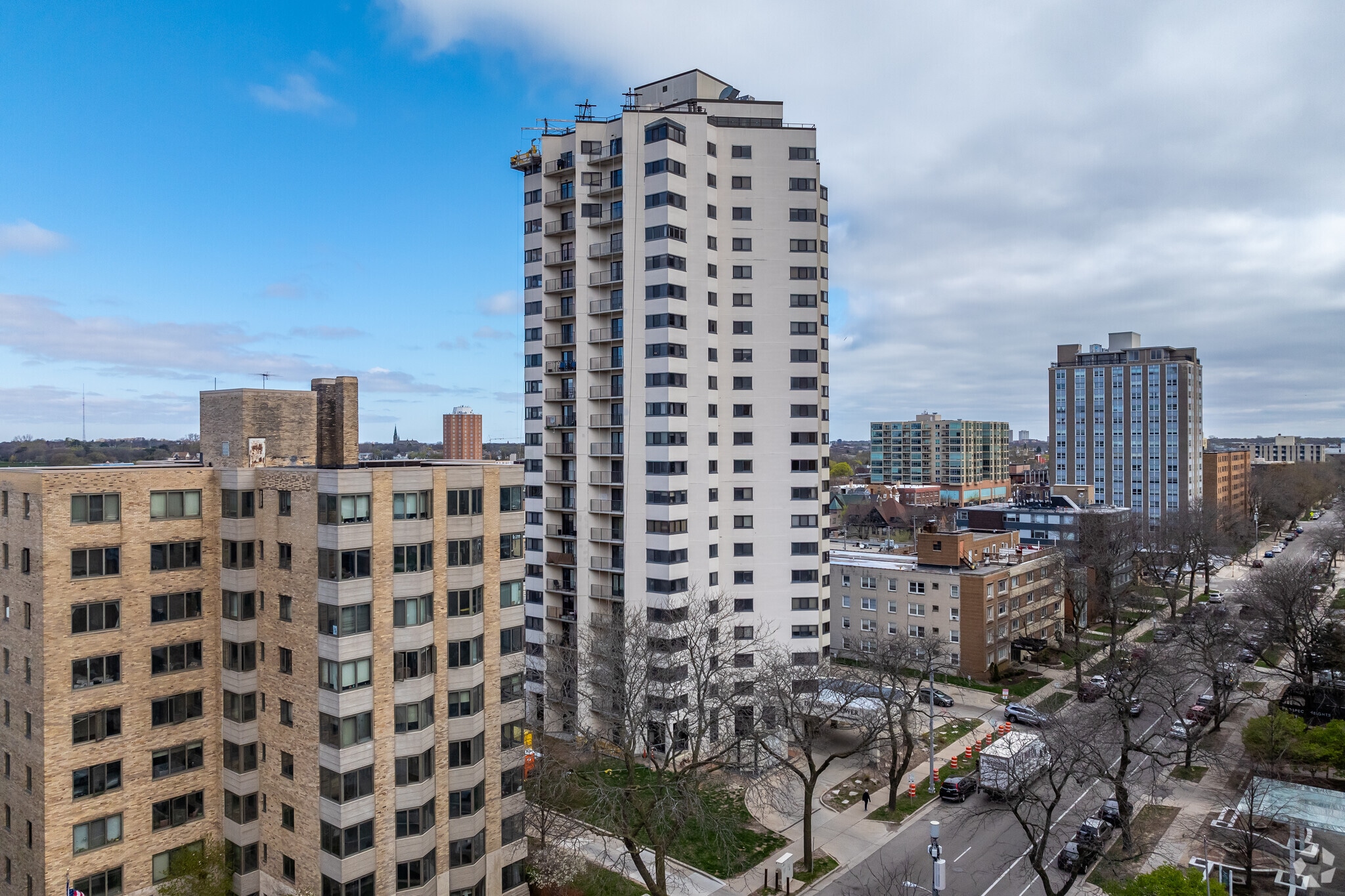 Diamond Tower, a 21-story high-rise completed in 1982, stands as a prominent fixture in Milwaukee's Lower East Side neighborhood. This condominium building houses 112 units, offering residents a blend of city convenience and lakeside charm. Situated in a dynamic urban setting, Diamond Tower provides easy access to the area's diverse attractions, from the bustling Brady Street to the serene shores of Lake Michigan.