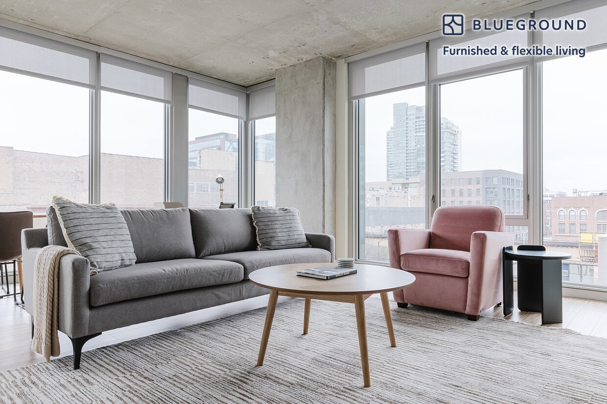 Show up and start living from day one in Chicago with this comfortable two bedroom Blueground apartment. You’ll love coming home to this thoughtfully furnished, beautifully designed, and fully equipped West Loop Gate home with stunning views over the city. (ID #CHI1138) The advertised rate of $3,680/month is the lowest available price, based on a 6 month(s) and 4 day(s) stay with a move-in date of August 16, 2026. If you’re looking for a 1-year stay, the rate is $4,080/month. Rates vary depending on the duration of stay, season, and other parameters. For exact pricing and additional pricing components, please visit our website and enter your desired move-in and move-out dates. The rate is applicable when billed upfront; it can be higher if billed in multiple payments. Brokers are welcome to reach out. Were you looking for an unfurnished lease? Try Blueground instead and upgrade from unfurnished to furnished living: - Furnished at rates comparable to unfurnished - No setup or furniture costs - save thousands - Move-in ready - save time, just bring your suitcase Designed with you in mind Thoughtfully designed with bespoke finishes, modern furnishings, and a fully equipped kitchen, you’ll enjoy that “I’m home” feeling with this Blueground apartment. Whether you’re lounging in your stylish living room streaming the latest and greatest entertainment on the smart TV or premium wireless speaker, or getting some well-earned rest on the superior quality mattress with fully stocked linens, you’ll fall in love with everything this West Loop Gate apartment has to offer. This apartment also offers in-apartment laundry. Sleeping arrangements King Bed, 70.8in/180cm Queen Bed, 63in/160cm Amenities Building amenities unique to this two bedroom apartment include an on-site: - BBQ Area - Doorman - Dryer - Elevator - Swimming pool - Washing machine - Lounge - Parking - Pets allowed Arrival and ongoing support The entire apartment is yours to enjoy! Throughout your stay, you’ll have access to our Client Experience team through the Blueground App. You can schedule additional cleanings, submit maintenance requests, and view our neighborhood recommendations with just a few taps. We’ll share all details upon confirmation of your stay. Other things to note Building amenities may have an extra cost. This Blueground apartment has flexible lease options, allowing you to book it for one month, a year, or more. Pets are welcome, though weight limits and breed restrictions apply and may incur fees. Parking is offered based on availability and is subject to a fee. We take great pride in ensuring every photo displayed is shot in our own units with our actual furnishings. That said, we regularly refresh our decor and furniture arrangement, which may differ from what’s pictured. Also note - This apartment's central location means it can be noisy at times - This is a guarded building equipped with a doorman/concierge at all times [SI]