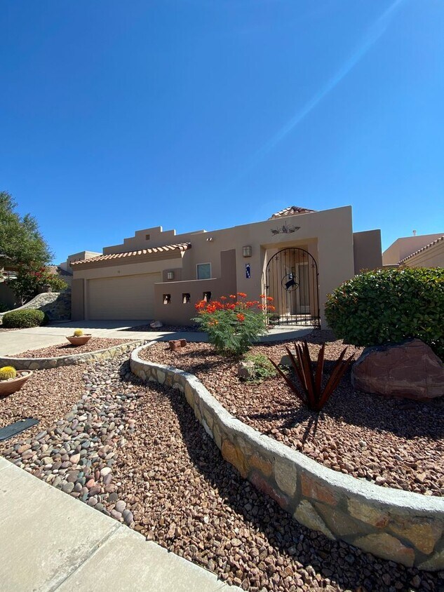 Beautiful home in The Boulders at Sonoma Ranch offers comfortable single-level living in a gated community in Las Cruces, NM. This three-bedroom, two-bath residence features refrigerated air, a two-car garage, and an in-unit washer and dryer for convenience. Enjoy additional living space in the sunroom, which brings in natural light and extends the usable footprint of the home. The gated setting provides a secure, well-maintained community environment.